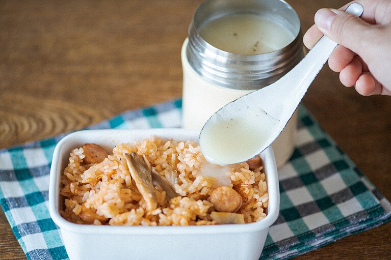 一緒に食べればリゾット気分! カブのポタージュごはん弁当