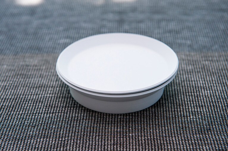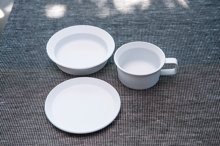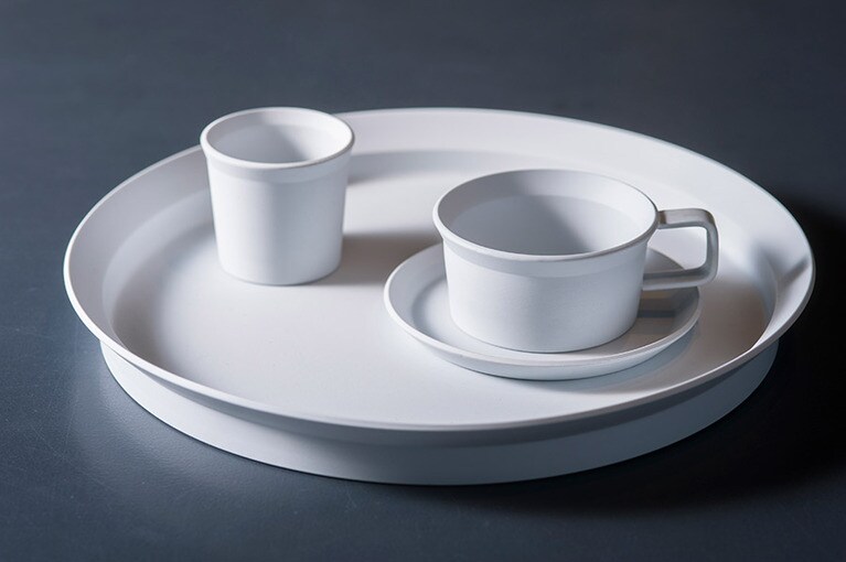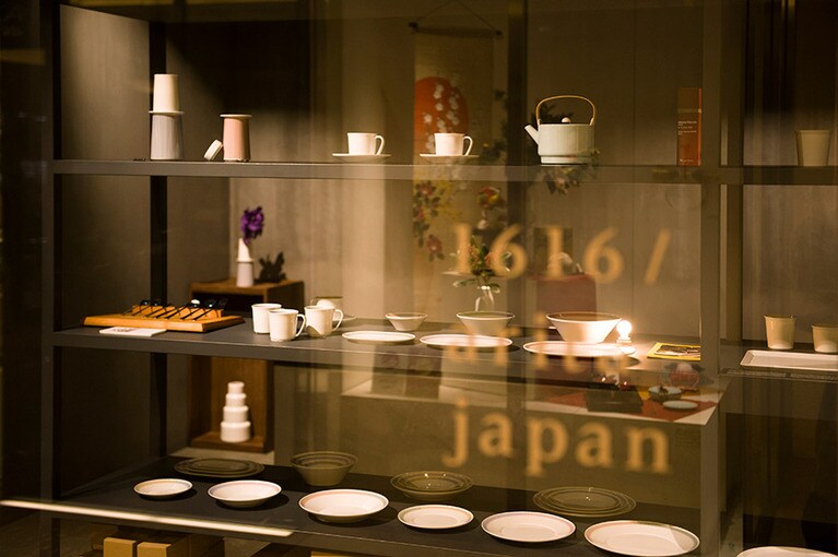 「1616 / arita Japan」。 1616 / TY “Standard” TY Square Plate Plain Gray シリーズ。90 550円、130 900円、165 1,100円、200 1,600円、235 2,300円、270 2,800円。 1616 / TY “Standard” TY Espresso Cup Handle Gray Φ60 1,400円、TY Coffee Cup Handle Gray Φ80 1,600円、TY Tea Cup Handle Gray Φ86 1,600円(百田陶園 パレスホテル東京店)。