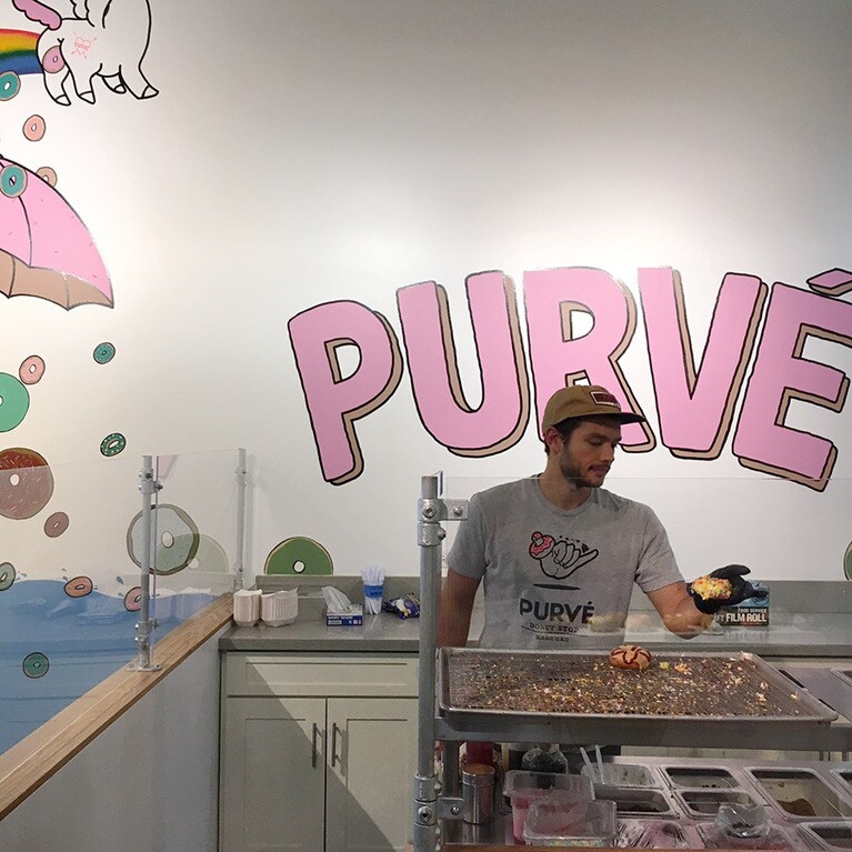禁断のブルーもハワイでは美味しく映える。 ピンクはライチー、黄色はパイナップル、青色はブルーベリーにコンデンスミルクをかけてモチと小豆も隠れているシェイブアイス。ケイキサイズで7ドル。 バビーズのモチアイスは各2ドル。 どれも1パック4.99ドル。ワンスライスでかっ! ブルードリームボウル11.95ドル。 店前もばっちり映える! 背後にサンセットビーチがある贅沢な中、撮影できます。 シロップ漬けになったチェリーがめちゃうま。チェリーズ・ジュビリー17ドル。 クラシカルな空間にも酔えます。 ドーナッツは各3.25ドル。右上から時計回りにミントオレオ味、マカダミアたっぷりのアロハマック、ピーナッツバターにジェリーソース、レモン味にフルーティーペブルス。