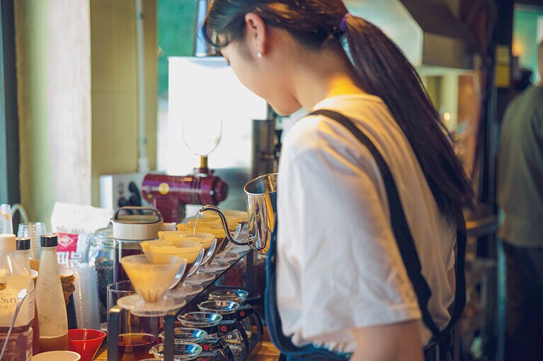 鍾路の喧騒が噓のように穏やかな空間。柔らかな光が差し込む2階のメインフロア。 木造の急階段がレトロな趣。 物置を半個室に見立てたスペース。随所に当時の日本の建築様式が。 左:ドリップコーヒーは8種類。右:豆腐にヒントを得た自家製チーズケーキ各5,500ウォン~。 かつての家主の名がオ・ジェドだったという。 長居必至なおひとり様コーナーは2つ。