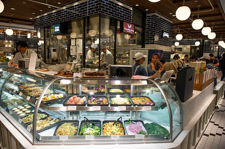 ブリオッシュ フィユテ 1,620円(税込)。 ブリオッシュ ノワール。 1,296円(税込)。 ブレッドマキ クロモン 972円(税込)。クリームチーズ、スモークサーモンに、なんと、たくあん、大葉と和の食材が入っています。具の種類は全3種。日本ではこちらの店舗のみの取り扱いです。 ティエリー氏(右)と、彼の右腕、M.O.F(フランス国家最優秀職人章)受賞のパン職人ジョエル・ドゥフィヴ氏(左)。 ぷるぷる生プルマン 1.5斤 735円(税込)。 ハワイらしい色とりどりのお惣菜は、見ているだけでワクワク! カスタマイズ デリプレート 1,059円(税込)から。 パオはりねずみ 400円(税込・写真左前)、パオきのこピンク 380円(税込・写真左奥)、パオぱんだ 380円(税込・写真右前)、パオうさぎ 380円(税込・写真右奥)。 海鮮ピラミッド炒飯 大500g 1,491円(税込・写真左)、海鮮ピラミッド炒飯 小250g 864円(税込・写真右)。 崎陽軒の看板メニュー、シウマイがなんと一口サイズのバーガーに。 ミニとんかつバーガー、ミニえびシウマイメンチバーガー、シウマイメンチバーガー 各280円。