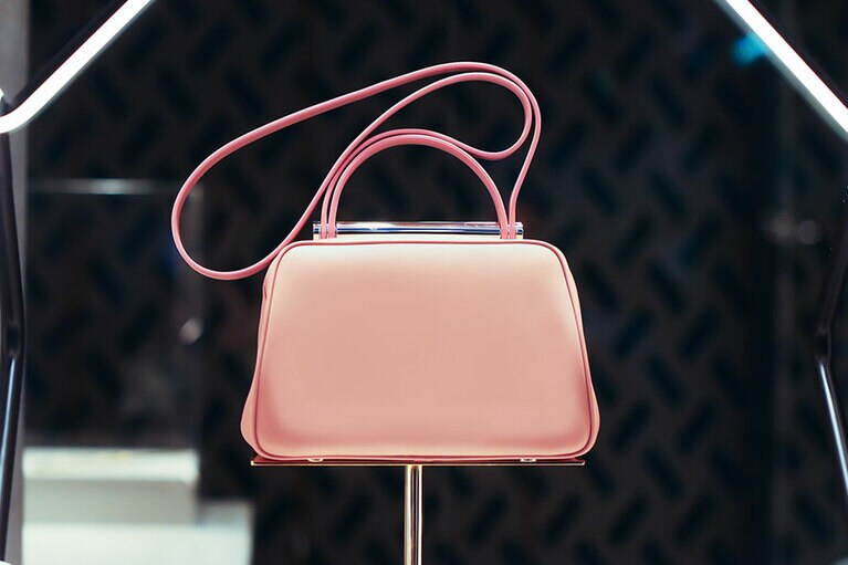 バッグを一度手に取ると、上質な肌触りに心が震えるほど! 新作バッグを斜め掛けするCEOのサラ・フェレロさん。 左がマイケル・アナスタシアデスさん、右がサラ・フェレロさん。 中央がブレスレット、右がリング。 ヴァレクストラ 東京ミッドタウン店にて。
