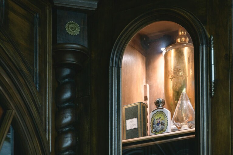 昔風のスタイルと、今ならではのインテリアが融合。 保湿効果もある水性香水「オー・トリプル」 各17,500円。 左からフェイシャルクリーム5,500円、スージングローション 4,800円、クレンジングウォーター 4,900円。 「ブジー・パルフュメ」は8種類の香りで、約80~100時間使用可能。 各17,000円。 使用されている草花が飾られている店内。 八角形フォルムが珍しい中性石鹸 4,300円。 左から歯磨き粉 2,900円、デンタルフロス 1,600円。 植物オイルは 3,400円~。右はロールオンタイプのアイセラム 3,500円。パウダーは100g 2,800円~。