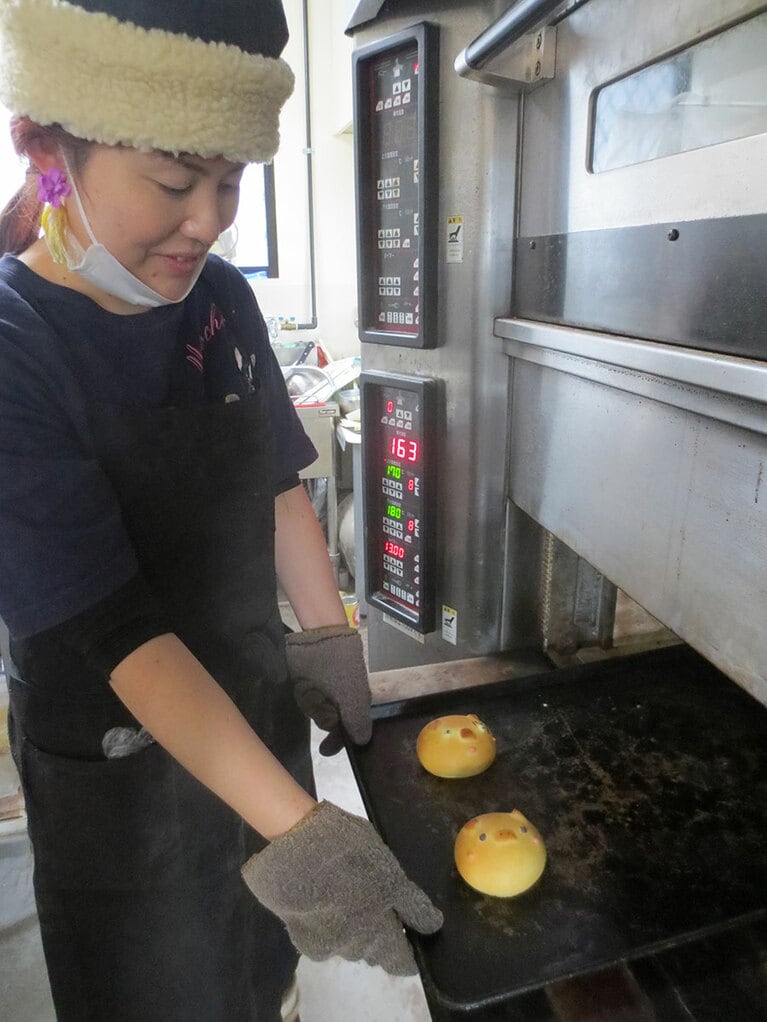 1個1個、色や柄、表情も飾りも違う。 上左から「ゴリラ(チョコチップ)」 150円、「リス(メープルチップ)」 180円、「チンパンジー(チョコチップ)」 170円。下「カエル(メロンパン)」 各150円。 「動物クッキー」 200円~。 秀政さんが作る「上生菓子」 各300円。 パンとわがしの店 mochiri。