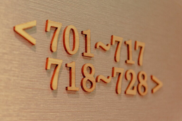 ダブルベッドを配したデラックスルーム。部屋ごとにレイアウトが異なる。 木製のルームナンバーやアンティーク風のライトも素敵。 女子旅に人気の2ベッドルーム。 ロビーにはセルフチェックイン・アウト機を設置。日本語ガイドも選べる。