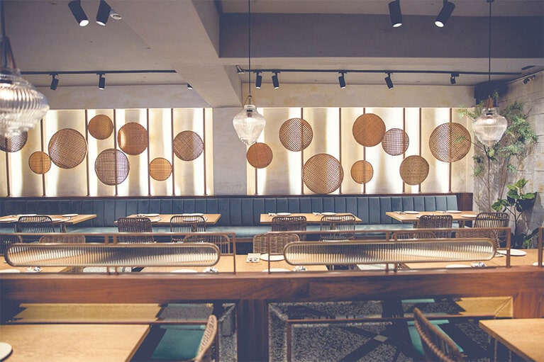 シグニチャーメニューはグリーンカレー。華やかな香りのカレーに煮込んだ牛肉とモツが入っているのがオリジナルだ。「綠咖哩燉牛肉(含牛肺)」480元。 料理はすべて辛さの調節ができる。器はトウモロコシの繊維製でエコ。 「香茅拌蝦」420元は、レモングラスたっぷりのソースで、すっきりとした辛さのえびのサラダ。手前右のカクテルは「GALANGAL DARK RAM」280元。ガランガルはショウガの一種でハーブとして使われる。 タイ人シェフの曽 勵翔さん。タイ本国のドンシェフも1~2カ月に1度は台湾を訪れている。
