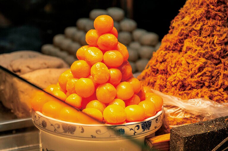台湾名物がなんでも揃う歴史ある夜市へ。「寧夏夜市」周辺図。 台湾名物がなんでも揃う歴史ある夜市へ。「寧夏夜市」周辺図。 寧夏夜市(ニンシャー イエスー)。 賑わう店頭。 「蚵仔煎」 75元。 無駄のない動きも必見! 鴻記鐵板燒蔥餅捲(ホンチーティエバンシャオツォンビンジュエン)。 ビールが止まらない! 「泡菜起司焼麺捲」 110元。 一見、お好み焼き風? この看板が目印。 揚げたてが絶品! 1個30元で注文は2個から。 いくつでもいけちゃいそう……。 並んでも食べたい。 いくつお持ち帰りで? ツヤツヤのモチモチ♡ ツヤツヤのモチモチ♡ 「焼麻糬」 1皿45元。 「花生湯」 50元。