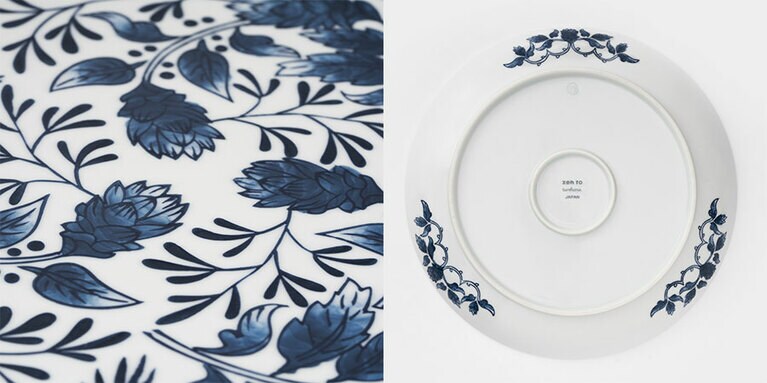 小宮山雄飛さん監修 カレー皿「zen to Y・K」 W275×D275×H50mm 2,800円。 ツレヅレハナコさん監修 カレー皿「zen to turehana_b」 W265×D265×H35mm 3,600円。 丈夫で使いやすく、価格も手ごろなものが多いことで知られている波佐見焼。 せっかく自分で作ったカレーなんだから、最高に美味しそうに盛り付けたい。そんな時に使いたい、シンプルで料理の映える真っ白な皿。 ジャイプールの伝統工芸品「ブルーポッタリー」のエッセンスを波佐見焼で再現。