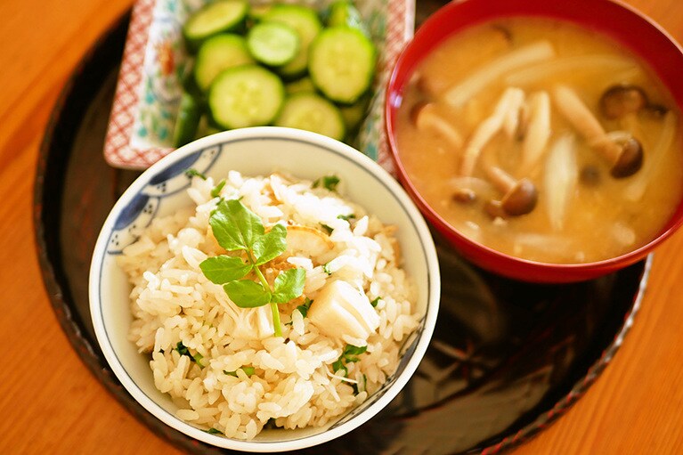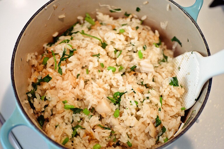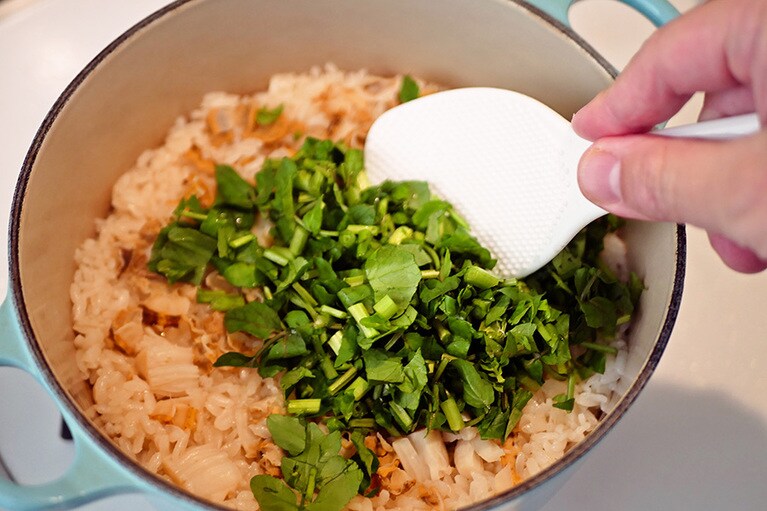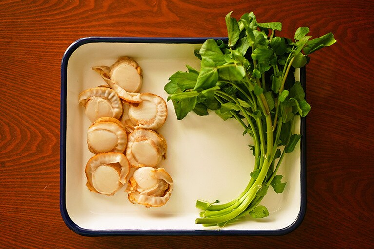 ホタテ×クレソンの名コンビで作る 香り豊かな大人の「炊き込みごはん」