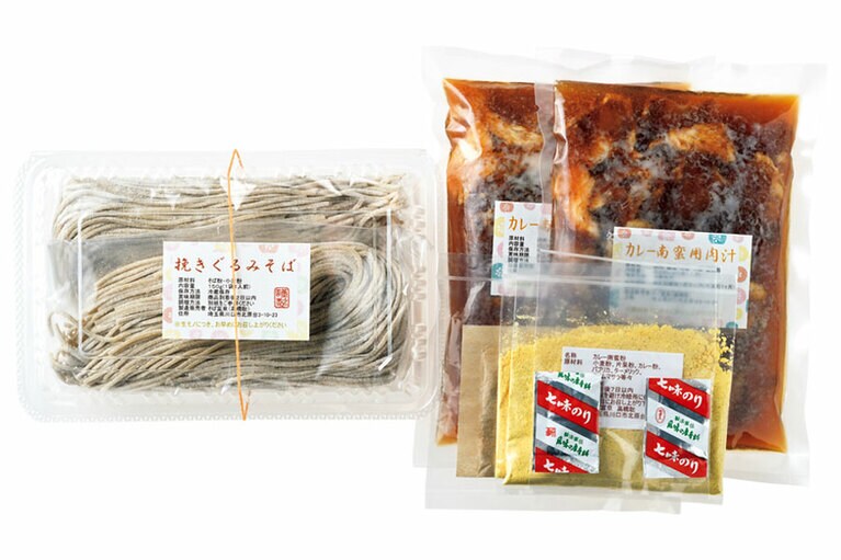 カレー南蛮そば 760円 ※2食~購入可/富泉 石狩産にしんそば (4食) 5,800円/手打ちそば さくら 鴨南蛮そばセット(6食) 3,348円/玉谷製麺所 石臼挽き十割手打ちそば(4食) 4,200円/戸隠手打ち蕎麦職房 華蕎