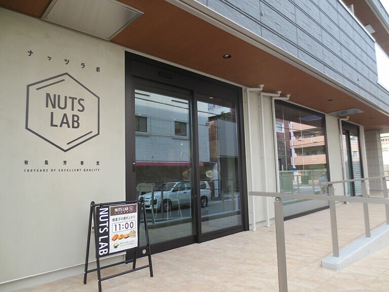 「木の実シュー」。左から、アーモンド、クルミ、ピスタチオ、ヘーゼルナッツ、ピーナッツ。 「木実氷(きみか)ソフト」イートイン 800円。テイクアウトの「木の実ソフト」は 500円。 「木の実シェイク」750円。 「木の実シュー」イートインは5個 1,250円。日替わり3個セット 750円。テイクアウトは6個 1,500円。 マドレーヌとフィナンシェ 各300円。左から「マドレーヌ」ヘーゼルナッツ、「フィナンシェ」ピスタチオ、クルミ。 焼き菓子 各300円。左から「コーヒーとクルミのパウンドケーキ」「ピスタチオとヘーゼルナッツのチョコレートケーキ」「バナナとクルミのパウンドケーキ」。 「ロッシェ」ココア、抹茶、ラズベリー各1袋 750円。「クッキー」1袋 300円。写真は「クルミとチョコチップのクッキー」。 ギフト用のボックスは六角形。ここで作られている「ナッツラボフレーバー」アーモンド、マカデミアナッツ 各750円。他に、有馬芳香堂の工場で作られた「匠の素焼きミックスナッツ」「ソルトミックスナッツ」「木桶醤油仕込みのミックスナッツ」など、各550円。 グリーンが映えるお洒落な店内。 店内では手作りする様子を見ることができます。