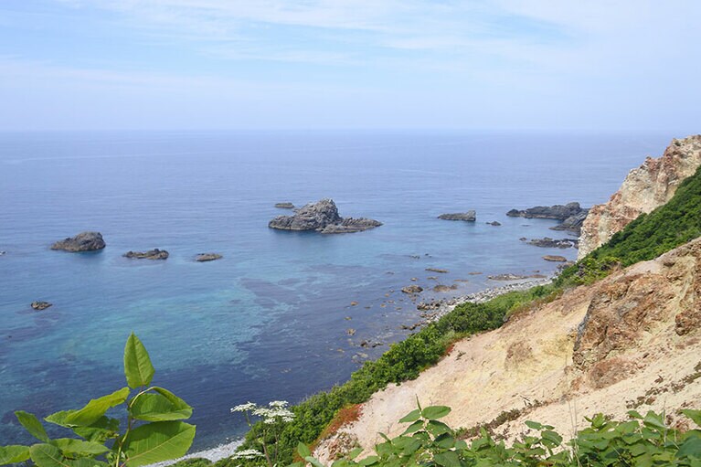 “積丹ブルー”を見に、北海道の積丹半島へ。 エメラルドがかった“積丹ブルー”をSUPで満喫。©K-LABO SUP 島武意海岸の沖を行くSUP。吸い込まれそうな青! ブルーの海と豪快な断崖。水面からの目線で大自然を満喫できます。©K-LABO SUP 海底に反射した青い光が美しい青の洞窟内。©K-LABO SUP 全日本SUP選手権優勝者でもあるケンタさん率いるK-LABO SUP。女性一人旅歓迎、札幌からの送迎も状況によっては無料でOKとのこと。 島武意海岸を目指すには、このトンネルを抜けます。 トンネルの向こうには、積丹ブルーの海! 迫力の岩峰。さすが「日本の渚百選」です。 波打ち際は丸石が転がるゴロタ浜。海に向かって右側の断崖は一部、変色帯になっています。 畏怖の念さえ感じる神威岬の稜線。尾根道を約20分進むと、突端へ。 「女人禁制の門」 神威岬の積丹ブルー。ここの尾根道が女人禁制になったのは、江戸時代、この地を治めていた松前藩がニシン漁を守るためにチャレンカの伝説を利用したから、との説も…… 夏の積丹といえば、ウニ! 最高級の赤ウニ(バフンウニ)もいただけるシーズンですが、こちら普通のウニ・イクラ丼。