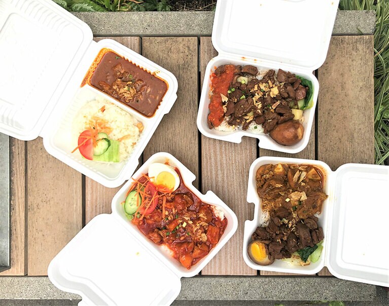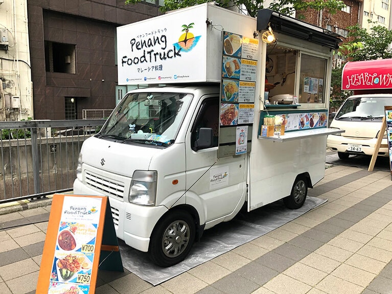 目印は南国の島ペナンを象徴する椰子の木のイラスト。2019年からキッチンカーをスタートし、リピーターには都内で働くマレーシア人もいる。 「チキンカレー」700円。ココナッツミルクのまろやかな風味のなかに、唐辛子のスパイシーさがしっかり効いている。 「しょうゆチキンライス、煮卵付き」750円。まるで鶏釜飯のようなやさしい味と自家製チリソースの辛みが絶妙なバランス。 「スパイシーチキンライス」800円。甘辛の濃厚ソースがご飯にぴったり。ゆで卵がいい具合に辛みを中和。 メニューは上記3種に加えて、「しょうゆチキンとチキンカレーのハーフ&ハーフ」700円。さらに、大手町の東京サンケイビル前の出店日には、焼き麺「チャークイティオ」 800円も加わる。 「毎朝仕込み、フレッシュな味を提供しています」と店主のジョシュアさん(左)。 コロナ禍を乗り切るためにクラウドファンディングで支援を募り、キッチンカーを購入。「ウェンディーキッチン」という名前は社内公募で決定。 「チキンライス」850円。ボリューム満点の鶏とご飯のコンビに、さっぱりとした辛さのチリソース、生姜ソース、黒醤油の3種のタレ付き。 「ナシゴレン」750円。海老の発酵ペースト「ブラチャン」のコク深い香りが食欲をそそる味。目玉焼きに、香ばしいフライドオニオン付き。 「ミーゴレン」750円。黒醤油で香ばしく炒めた焼きそば。辛み調味料サンバルのちょい足しで、よりマレーシアらしい味に。 「グリーンカレー」750円。ココナッツミルクがまろやかなクリーミーなカレー。グリーンカレーはご存じのようにタイ料理だが、マレーシアでも人気(今後は別メニューに変更の可能性あり)。 チキンライスと日替わり1種。計2種のメニューを平日は毎日提供している。 「海外旅行ができなくなった今、せめて料理で両国をつなぎたい。現地で人気の料理をどんどん紹介していきます!」とウェンディー・ジャパンの前川さん(左)。右は、同じく旅行会社で、サポーターの瀧井さん(エムアールシージャパン)