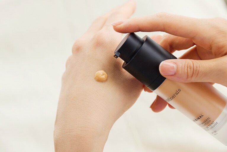 左:肌に負担をかけないミネラルと、うるおいたっぷりの植物由来成分がメイン成分。つけるたびに健やかな素肌を育む。オリジナル リキッド ミネラル ファンデーション(SPF20・PA++)全10色 各30mL 5,280円(8/20新発売) 右:5種のミネラルを厳選ブレンドし、ツヤとカバー力、クリーミーな質感を実現。オリジナル ファンデーション(SPF15・PA++)全12色 各8g 4,180円/ともにベアミネラル モデル使用色:オリジナル リキッド ミネラル ファンデーション(フェア 01)、オリジナル ミネラルベール プレストパウダー(シアー フェア)、ミネ ラリスト アイシャドウ パレット(ウルトラ ナチュラル)、ミネラリスト リッ プ グロスバーム(インジェヌイティ)/すべてベアミネラル ジレ 26,400円/ソブ(フィルム)、イヤリング 83,600円/ヴァンドーム青山(ヴァンドーム青山本店)、タンクトップ、パンツ/スタイリスト私物 左:オリジナル リキッド ミネラル ファンデーション(SPF20・PA++) 全10色 各30mL 5,280円(8/20新発売) 中:オリジナル ファンデーション(SPF15・PA++) 全12色 各8g 4,180円 右:オリジナル ミネラルベール プレスト パウダー 全3色 各9g 4,400円(8/20新発売)/すべてベアミネラル