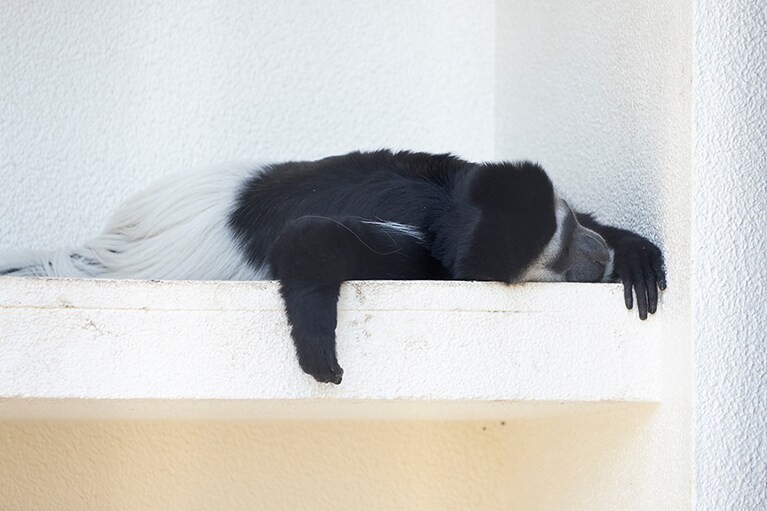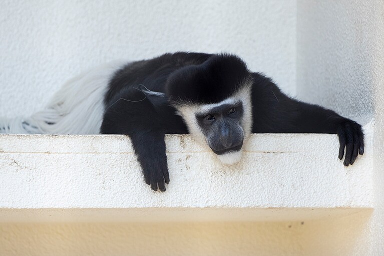 旭川の「涼」をお届けするつもりでしたが……!? 動物園の近くの温度計。クマは涼しさをアピールしたかったのでしょうか……。 アビシニアコロブスの親子。まるで絵画のよう。 どの体勢が涼しいのか確認中? 日陰に集っています。 たしかにやり切れない暑さです。 涼しい場所を求め、真剣な表情です。 お母さんの「結」と子どもの「あさひ」。 至近距離のあさひ。 元気に餌を食べるあさひ。 大きくなってもお母さんが寄り添います。 目が合うこともしばしば。 目の前でくるくる回転。 ちょっと個性的な性格? さすが、キングペンギン。王の風格です。 ひと泳ぎしてきたペンギンも。 水面から顔を出してうとうと。