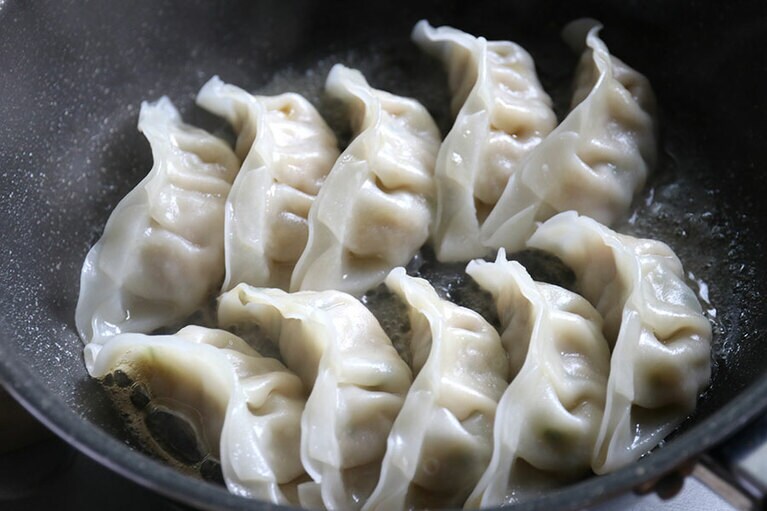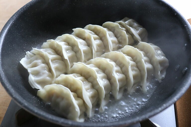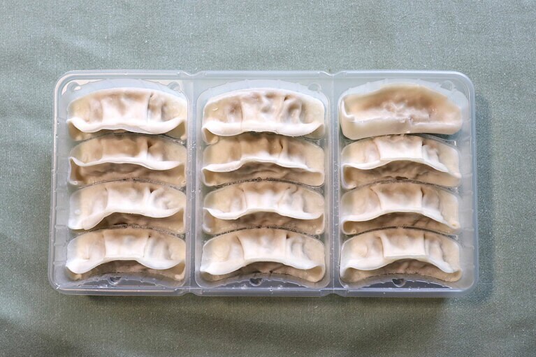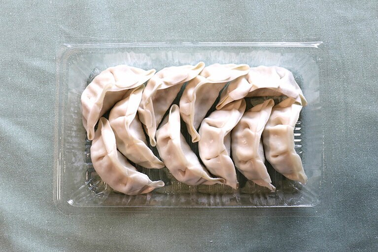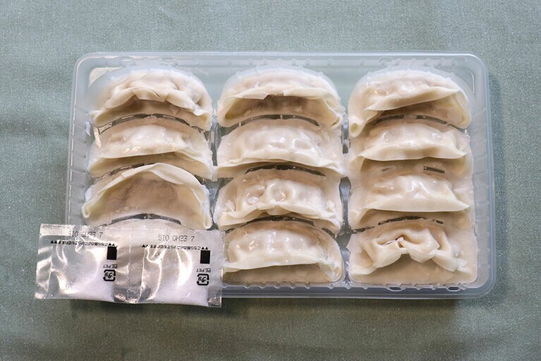 左から東スポ、餃子計画、大阪王将、AJINOMOTO。東スポは大きい。大阪王将、AJINOMOTOは簡単に羽根つき餃子となる。 東スポニンニクマシマシ餃子。今回食べ比べた中で最も高級。50個入りで2,484円。1個=約50円。 AJINOMOTO新ギョーザ 12個入り 215円(編集部調べ)、1個=約18円。 餃子計画 冷凍生餃子 50個入り 1,649円(Amazonでの販売価格、編集部調べ)。1個=約32円。 羽根つきスタミナ肉餃子 12個入り 215円(編集部調べ)、1個=約18円。