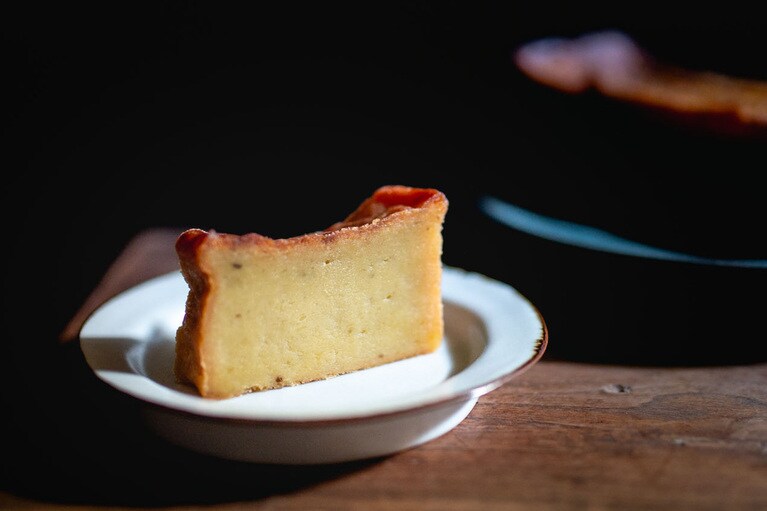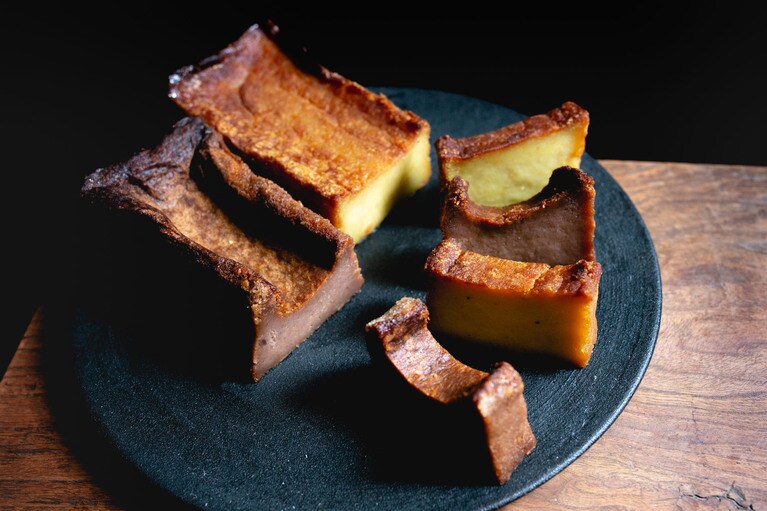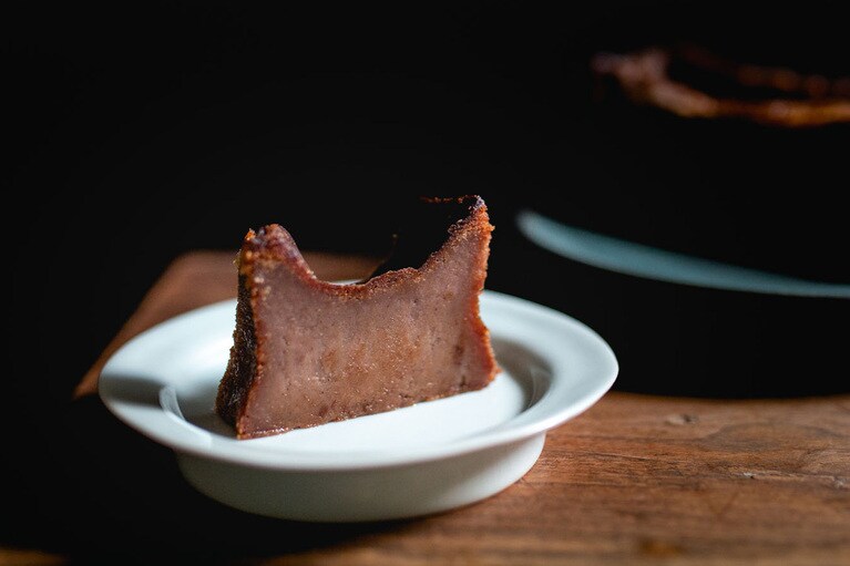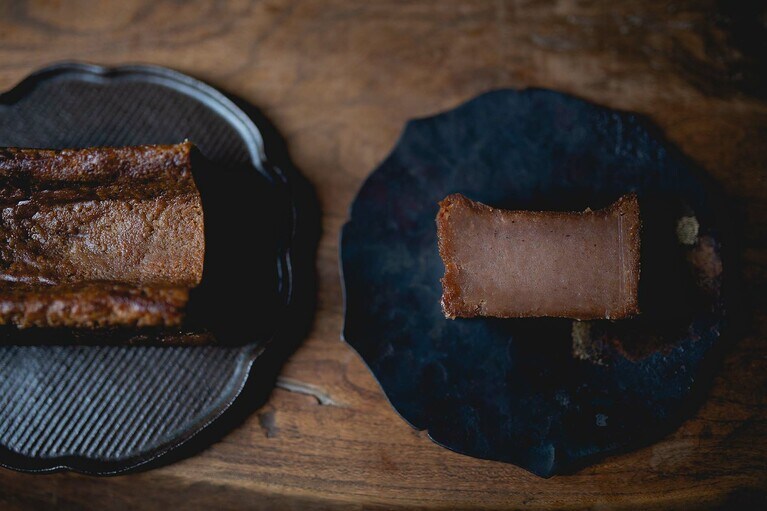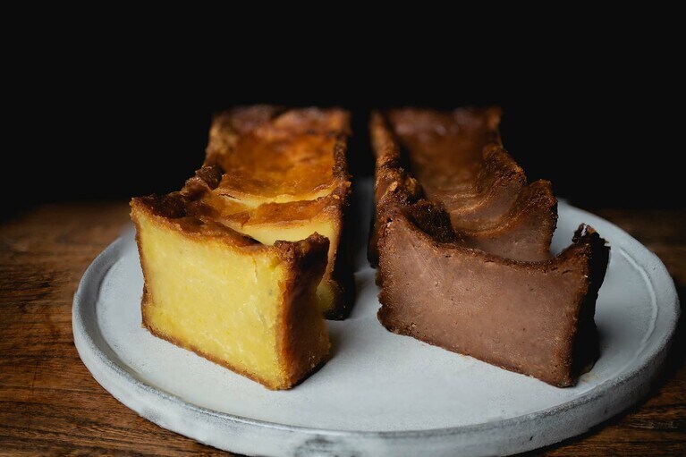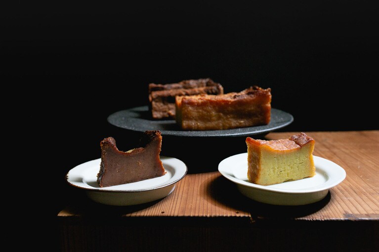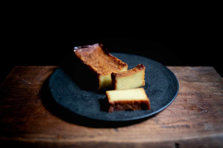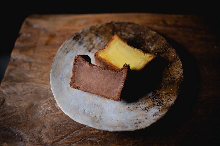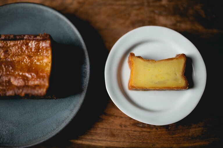 芋と栗の濃厚な風味を味わえる「くらやのてりんぬ」をいただきます。 左:くらやのてりんぬ(芋) 3,500円、右:くらやのてりんぬ(栗) 4,000円。※全国送料一律770円。 芋は地元の茨城県産のものを、栗はフランス産のものを使用。「茨城は栗の名産でもあるので、ゆくゆくは地元の栗を使ったスイーツを開発していきたいです」とオーナーの寺田さん。 白押しのロゴが粋な包装箱。しっかりした素材で、贈りものとしてもきちんとした印象を与えます。 真空パックをオープン! 10等分はできそうな大きさです。 左が芋で、右が栗です。