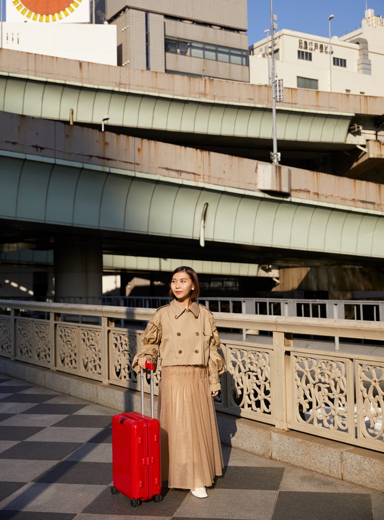 リモワ オリジナル チェックインM(シルバー)168,300円/リモワ(リモワ クライアントサービス) リモワ エッセンシャル キャビン(レッド)94,600円/リモワ(小林さん私物) リモワ パーソナル クロスボティバッグ(ホワイト)147,400円/リモワ(リモワ クライアントサービス)