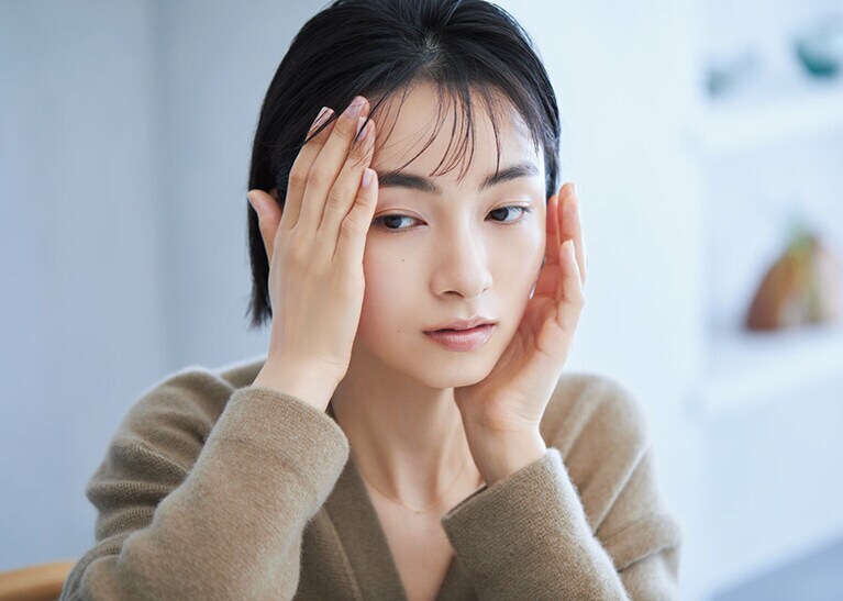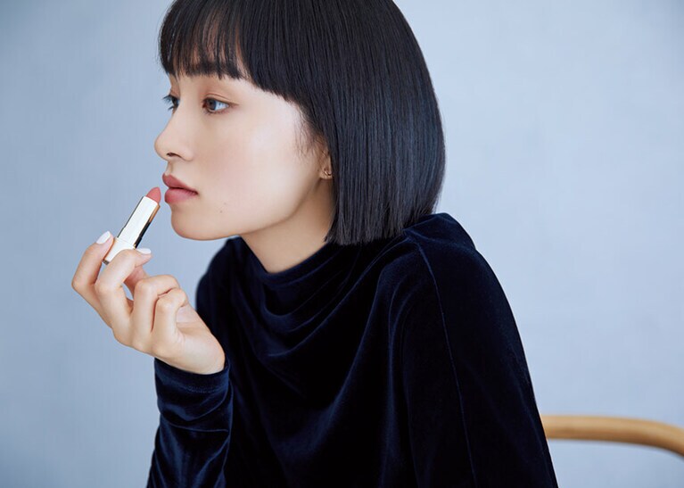 カーディガン53,900円/ウェルノード(アルファ PR) 右から:アルビオンのスキンケアシステムは、洗顔後にまず乳液、その後に化粧水。エクシアの乳液は、濃厚でとろけるようになめらかに肌を潤いで満たし、ふっくらとハリをもたらす。エクシア ラディアンスリニュー エクストラリッチミルク 200g 13,200円 オートクチュールのように、纏う人の肌にぴたりと馴染んで美しい膜をつくるリクイッドファンデーション。キメひとつひとつが透き通ったような仕上がりが続く。エクシア フリュイド ファンデーション HC SPF25・PA+++ 全6色 30mL 13,200円/アルビオン ベロアのトップス 28,600円/フィーニー(ノーヴェンバー) 右から:なめらかなタッチとすばやいフィット感。鮮やかな発色で美しいラインを描く。エクシア リクイッド アイライナー(GN50) 6色 各4,400円 軽やかにフィットするマットな質感で、マニッシュ&エレガントな印象。エクシア ルージュ ヌバック(PK100) 4色 各4,950円 爪にガラスのようなツヤと美しい発色。エクシア ヴェルニ(07) 全7色 2,750円 目元に繊細な立体感をつくりだすアイカラーパレット。エクシア アイカラー カンテット(02) 3種 各6,600円/アルビオン ※( )内は写真掲載色の色番号であり、モデル使用色です。
