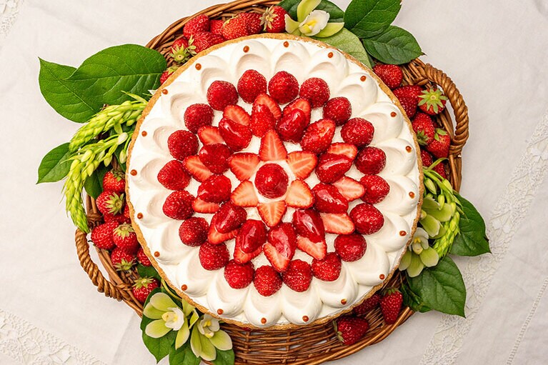 「白イチゴ~初恋の香り~がより添うイチゴムースのタルト」whole(25cm) 11,880円。 piece 1,188円。 「フレジエのタルト~ピスタチオ風味~」whole(25cm) 10,800円。 piece 1,080円。 「イチゴとカスタードプリンのタルト」whole(25cm) 7,776円。 piece 777円。