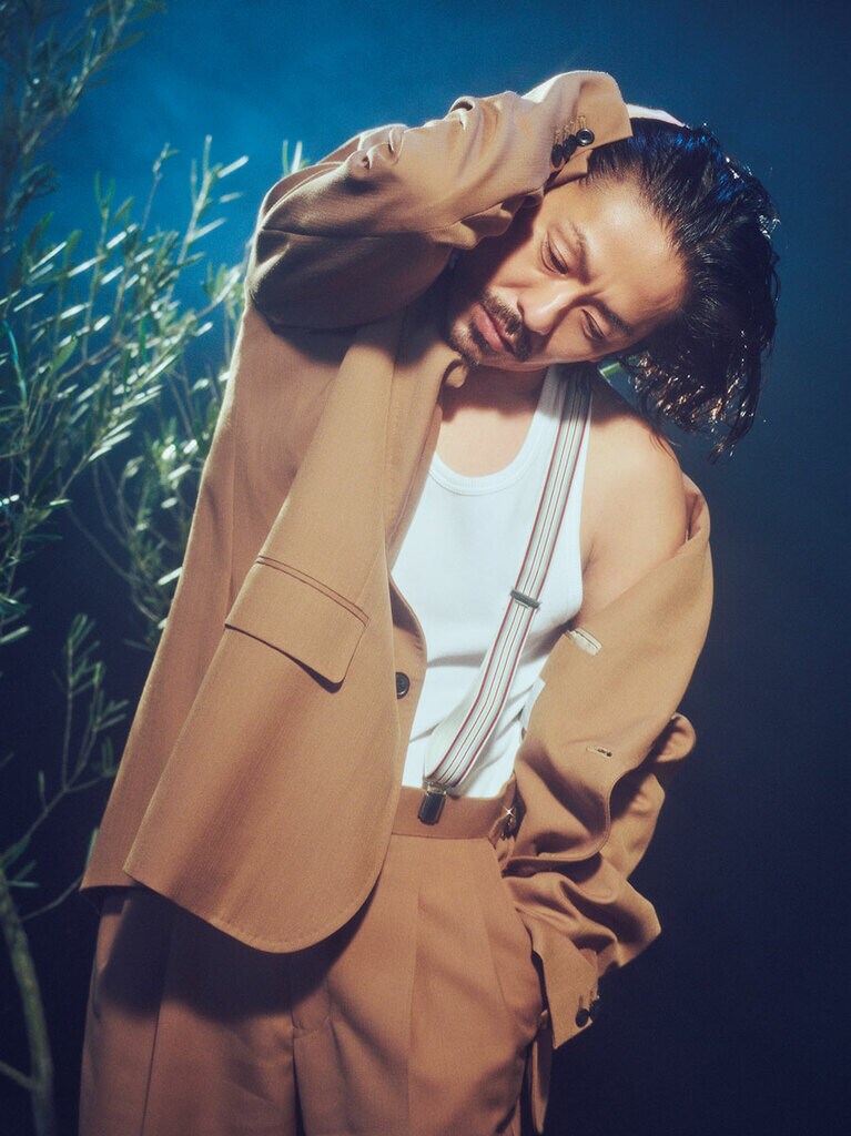 ジャケット 108,900円、パンツ 49,500円/ともにトーガ・ビリリース(トーガ 原宿店)、サスペンダー 3,600円/川、その他/スタイリスト私物 ©MOSS/ギークピクチュアズ/ゴーストイッチ