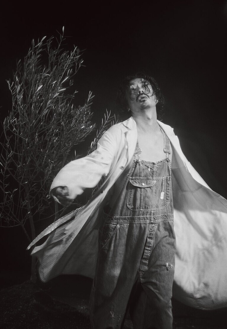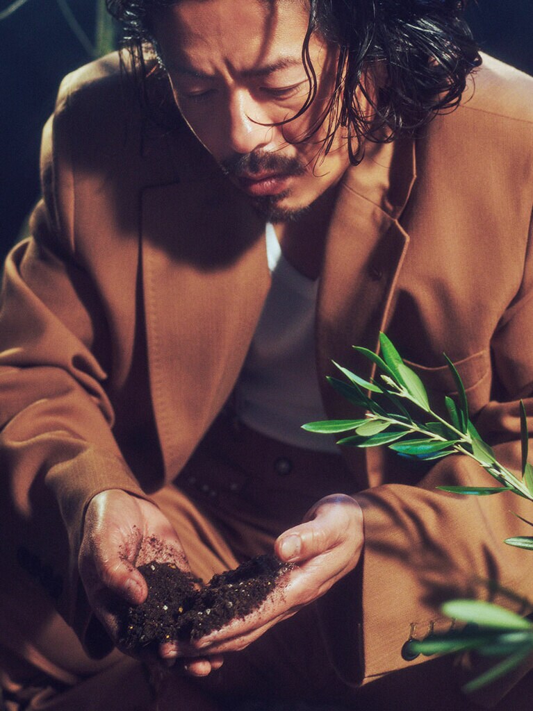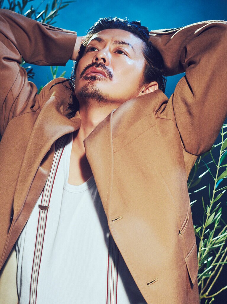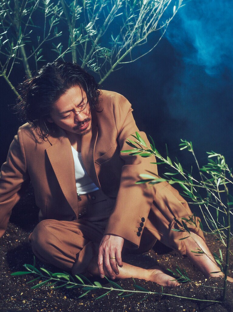 ジャケット 108,900円、パンツ 49,500円/ともにトーガ・ビリリース(トーガ 原宿店)、サスペンダー 3,600円/川、その他/スタイリスト私物 ©MOSS/ギークピクチュアズ/ゴーストイッチ