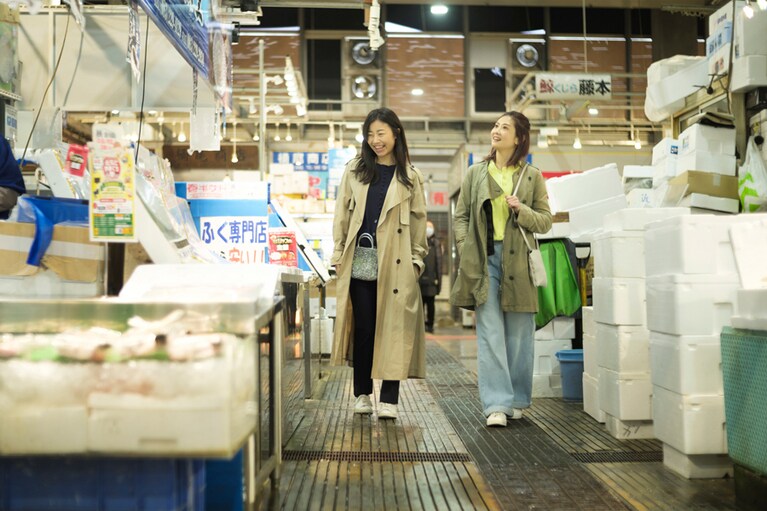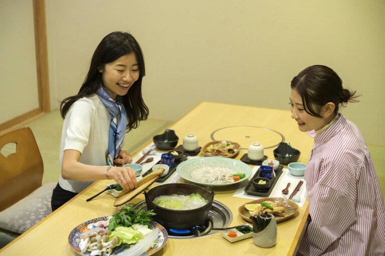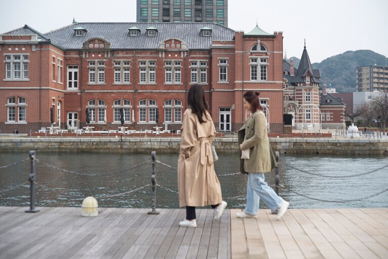 北九州空港へは羽田空港から約1時間45分。九州の旅への玄関口。 CREAアンバサダーの池田りりかさん(左)と内藤記世さん(右)。二人とも大の旅行好き( ※2)。 2019(平成31)年に6年に及ぶ工事を終え、大正時代の姿に復原されたJR門司港駅。 開業の頃の様子を窺わせる1階コンコースや改札口。コンコースでは出札室窓口やシャンデリアも当時を再現。 大正期の駅舎の雰囲気を活かしつつ、現代のテイストを巧みに組み合わせた「みかど食堂 by NARISAWA」の上質な空間デザイン。 「特製シーフード焼きカレーと季節のスイーツセット」3,080円。スープとサラダ、そして食後には3種のデザート盛り合わせと、コーヒーまたは紅茶が供される。 レトロな木造ビルの中に入って直ぐの階段を上ると……。 1930(昭和5)年頃に海運会社の本社ビルとして建築された新海運ビル。船をモチーフにしたという建物はディテールまでチャーミング。 着けているのを忘れるほど軽いのが、ishのクレイアクセサリーの特長。1点1点ハンドメイド。 門司港から台湾、中国、インド、欧州へと旅立つ人々で賑わっていたという旧大阪商船ビル。 門司港のシンボルでもある赤れんが造りの旧門司税関。歩行者専用のはね橋「ブルーウイングもじ」は10時、11時、13時~16時の毎時ちょうどに開橋。 「世界の門司港」と呼ばれた往時の面影を残す旧門司税関のエントランスホール。 “バナナの叩き売り”発祥の地とされる、門司港にぴったりの「焼きバナナパルフェ」790円。完熟いちごを贅沢に味わえる「ストロベリーパルフェ」(時価)。 門司港レトロ地区から宇佐神宮へはクルマで約1時間20分。 神域へと通じる朱塗の橋を渡って宇佐神宮本殿へ。 一之御殿・二之御殿・三之御殿の3殿が並ぶ宇佐神宮本殿。朱塗柱が壮麗な八幡造で国宝に指定されている。 一般的な作法「二拝二拍手一拝」とは異なり、宇佐神宮の参拝は「二拝四拍手一拝」が作法。 三角形の2つの石が並ぶ「夫婦石」。夫婦やカップルは手をつないで左右それぞれ同時に、独身の人は左右を両足で踏むと幸せになれるそう。 視界いっぱいに広がるマジックアワーの美しい夕景。 美しい夕景に思わずうっとり。足元には宮本武蔵と佐々木小次郎が決闘したとされる巌流島のシルエットも。 食べる芸術品のようなふぐ刺しから大きな身の入ったふぐちりまで、ふぐのフルコースを前に思わず歓声が。ふぐ刺しは一人前からでも注文できる。 ゆったりとしたスペースが広がるプレミア海峡デラックスツイン。窓からは関門橋や対岸の下関の夜景も眺められる。 マグロ、ホタテ、いくらなど新鮮な魚介がのった「関門海鮮どんぶり」。プレミアホテル門司港の朝食は旅好きにもファンが多い。通常は全てビュッフェ形式の朝食だが、取材時は新型コロナウイルス感染状況などにより、期間限定で個人盛和食と洋食のビュッフェの両方を提供していた。 「海と山の距離が近く、レトロな建物が立ち並ぶ門司の風景は、自然と街が一体化していて散策しているだけで楽しい」と内藤さん。 海底に伸びる関門トンネルは、上はクルマ、下は徒歩で通行できる。エレベーターに乗り、いざ人道へ。 こちらが福岡、あちらが山口。珍しい海底の県境は撮影スポットとしても大人気。 壇ノ浦に向かって開かれた赤間神宮の水天門は、まるで竜宮城のよう。 参拝のあとにひいたおみくじは、はたして吉? 毎週大勢の来場者で賑わう唐戸市場の「活きいき馬関街」。 新鮮な地魚などネタもカラフルな握り寿司が屋台いっぱいに並ぶ。 シャリが見えないほどおおぶりなネタが乗せられた握り寿司は味もボリュームも満点。ふぐのフライやアラ汁なども味わえる。 唐戸桟橋と門司港を約5分で結ぶ関門連絡船。巌流島に立ち寄る路線もある。 陶器を思わせるTOTOミュージアムの外観は、「水」と「大地」をモチーフとしてデザインされているそう。 東洋陶器株式会社として創立した当時に輸出していた食器類や、迎賓館赤坂離宮といった有名建築に備え付けられていた水まわりなど、TOTOの歴史がたどれる展示室。 伝統の小倉織を現代によみがえらせた「小倉 縞縞」。バッグや小物のほか、ブラウスやワンピースなどアパレルも揃う。 最近人気を呼んでいるカラフルな「SDGsシリーズ」を手に、二人はあれこれお土産選び。 こんなところにカフェが?と思うような細い路地を入っていくと、古民家をリノベーションした「茶論 Salon du JAPON MAEDA」が。 「九州に来たら八女茶を飲むのが楽しみなの」(池田さん) (左)抹茶と季節の和菓子のセット900円、(右)抹茶チョコフォンデュ800円(税抜)、冷玉露600円(すべて税抜)。 煎茶やフレーバー紅茶などが手軽に楽しめる「一煎パック」100円(税抜)~。「茶論ワッフルクッキー キャラメルサンド」1枚162円(税抜)。 海の上に浮かぶ北九州空港と九州本土をつなぐ「新北九州空港連絡橋」。天気が良いと絶景が見渡せる。 山口県下関市の川棚温泉へは、北九州空港からクルマで約1時間15分。(写真:川棚グランドホテ