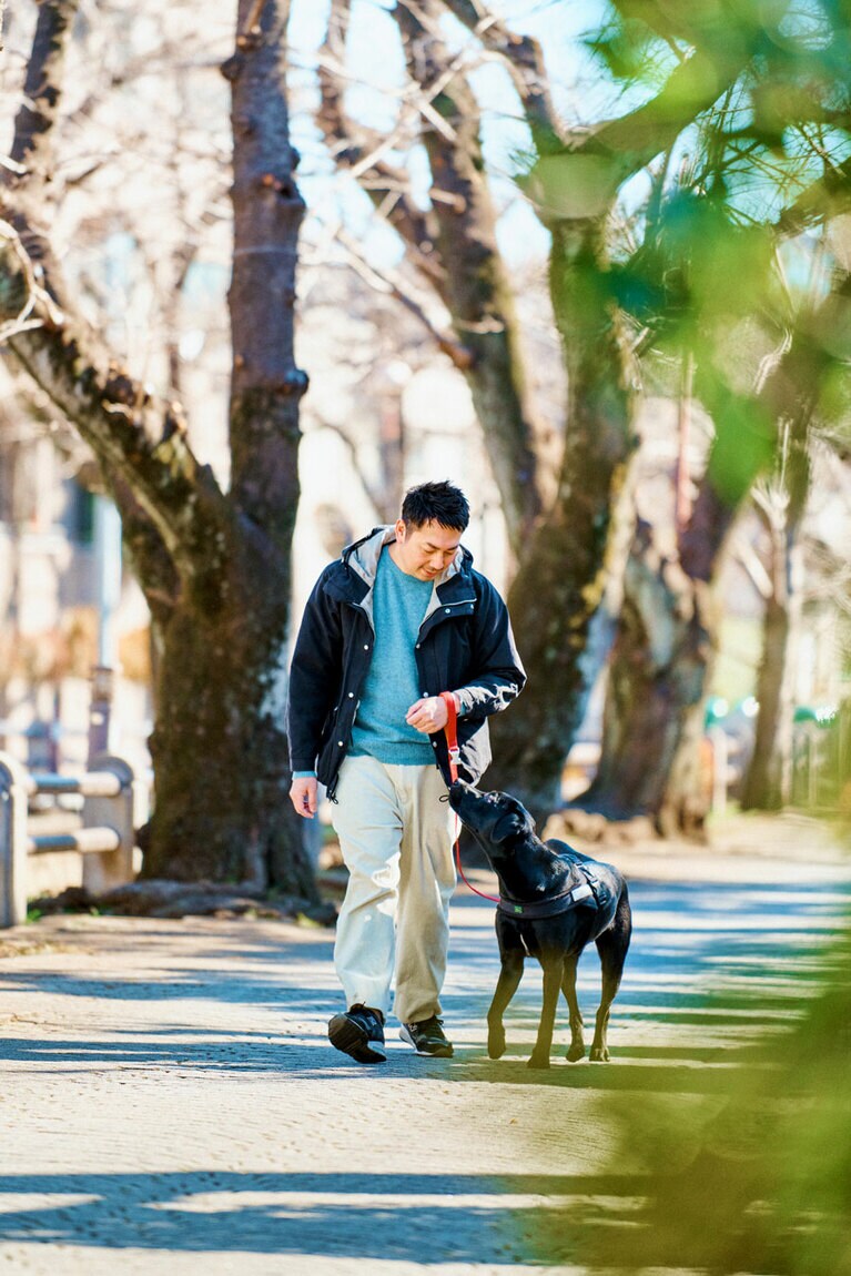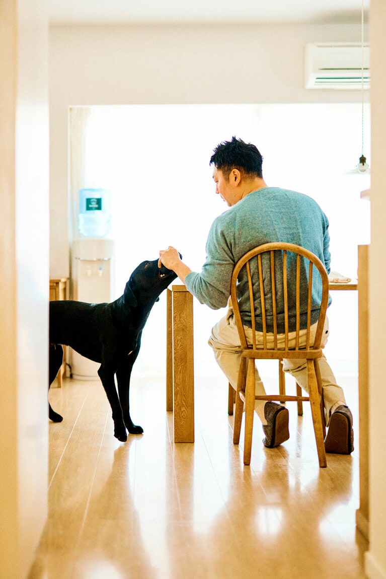 ジーノ 1歳 オス ラブラドールレトリバー。 今の家より広かった福岡では「お掃除ロボットを全然信用できなくて」と毎日掃除機をかけていた渡辺さんだが、年末にルンバを導入。「スイッチを入れて散歩に出て、帰ってきたら部屋がきれいになっているって最高」 ジーノの食器は、もともと渡辺さんが使っていたもの。ウォーターボウルは韓国の真鍮の食器で、「バシャバシャこぼすから」とザ・コンランショップで購入した大皿の上に。奥はジーノが子犬のころのご飯セットで、ウォーターボウルは海外の蚤の市で買った銀食器。 バスルームにジャストフィット!