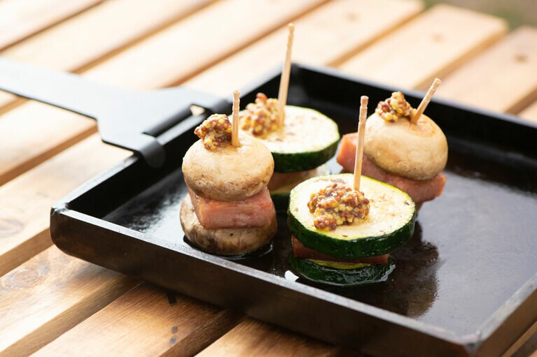 キャンプの夜は長いから、おつまみを作りながらちびちび飲んで過ごすのがおすすめ。 無限きのこの名前の通り、食べ始めたら箸が止まらない! 罪悪感なく食べられるスパムサンドはおつまみにぴったり。 ヘルシーだけどしっかりした味わいと食べ応え。白ワインとどうぞ。 香り高いイカとキャベツの甘味が相性抜群。後を引くおいしさです。