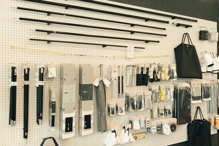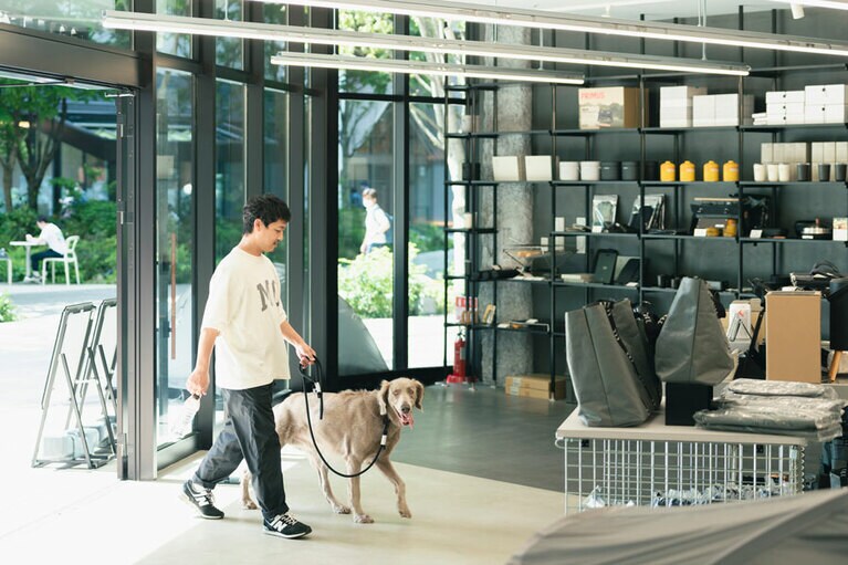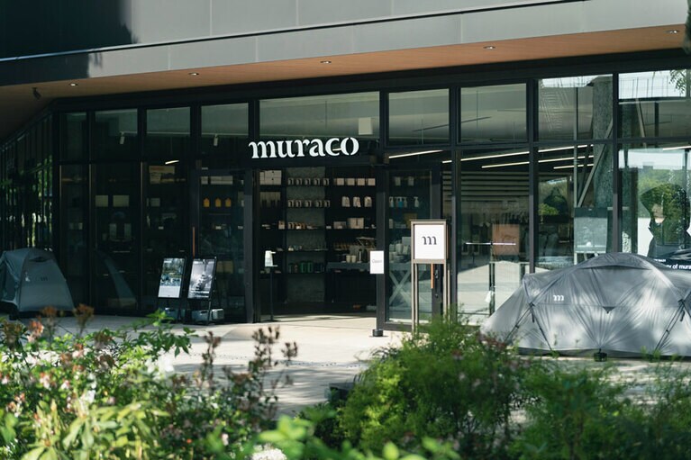 ムラコ代表の村上卓也さんと愛犬のグリ。 広く開放的な店内。 よく見るとムラコの頭文字“m”が。 開放的で風が心地よい。 ムラコ独自の目線でセレクトしたおすすめ商品も。 muraco TACHIKAWA限定商品。UTILITY SHOPPING TOTE BAG S:1540円、M:1,980円、L:2,420円。