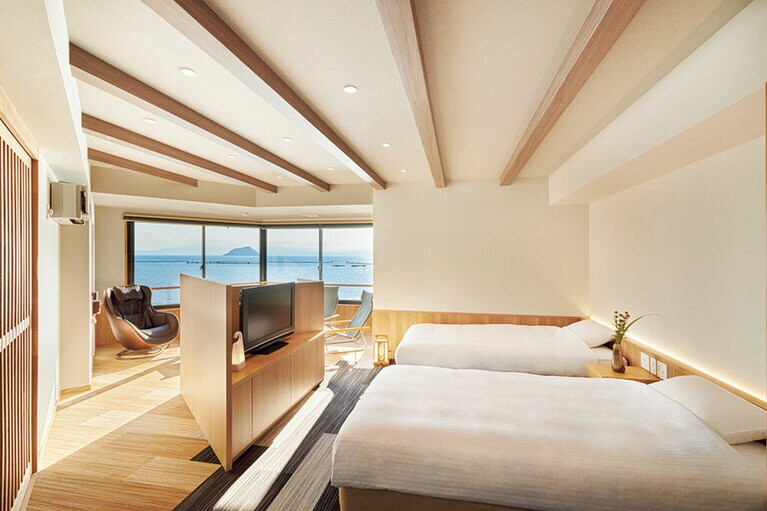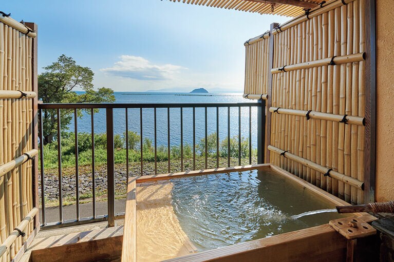 旅館の名は近くの川に住んでいたとされる伝説の「紅さし鮎」に由来。6~8月限定の鮎会席では琵琶湖産の稚鮎を湖畔の河川の水で育てた鮎が味わえる。新鮮な琵琶湖の鮎で夏の訪れを味わう。 周囲に何の建物もない一軒宿。 美肌作用があるという尾上温泉の湯に浸かり、湖の眺望を楽しめる大浴場。 日本三大和牛の一つ、近江牛を堪能できる「近江牛づくし(特選)」コース。