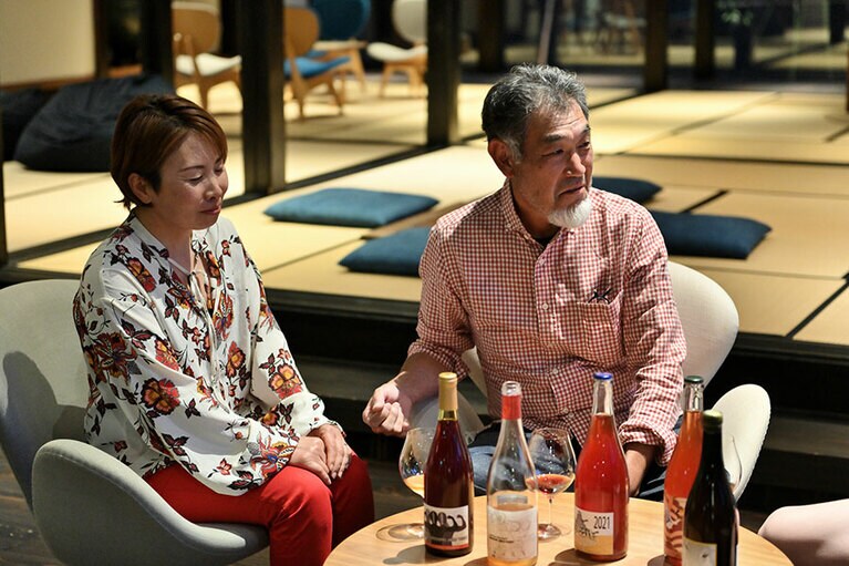左から、「イエローマジックワイナリー」の岩谷恵美さん、岩谷澄人さん、「グレープリパブリック」の矢野陽之さん。 左から、「イエローマジックワイナリー」のヒップホップ ミックス2021、グルーヴ デラ ヤロウ2021、「グレープ リパブリック」のローザ 2021、ヌメロ ウノ 2020。 風が吹き抜ける「グレープリパブリック」の畑。 置賜盆地の「イエローマジックワイナリー」の畑で育ったデラウエア。 デラウエアを使ったオレンジワイン、グルーヴ デラ ヤロウ2021。 「毎年同じものはできないのがワイン造りの面白さでもあります」と岩谷さん。 「イエローマジックワイナリー」の畑。ブドウの状態を見ながらビニールをかけたり、外したりしていく。 岩谷さんの右腕となってワイン造りに携わる岩谷恵美さん。 「ブドウを踏んで造ると、その過程が映し出されるような味わいになる」と岩谷さん。 「イエローマジックワイナリー」の“ヒップホップ ミックス”シリーズ。 南陽市にある「グレープリパブリック」の醸造所。 「自分が好きなもの、感覚を信じて造るだけ」と話す矢野さん。 新潟県三条市でミシュラン一つ星レストランを営んでいた原田さん。 米沢牛のもも肉を絶妙な火加減でソテーした逸品。リンゴのピュレと塩でいただく。