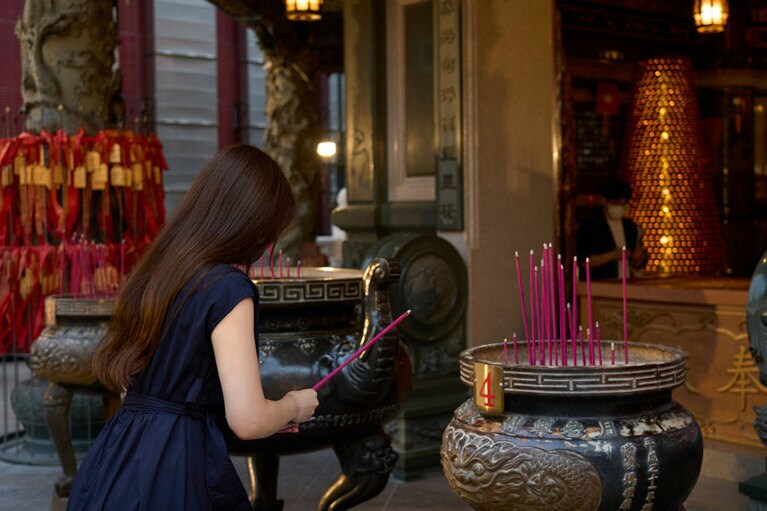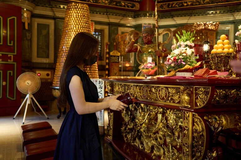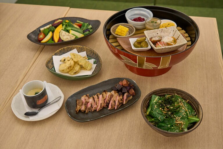 どれも鮮やかな刺繍が施されている。 こちらが媽祖さまに伺うための「神筈(しんばえ)」。裏と表それぞれが出た状態。 ライトアップの色が変わる様子も楽しめます。 2021年春に開業したロープウェイ「YOKOHAMA AIR CABIN」もライトアップ。 写真手前から時計回りに「ミニトマトの塩麹ドレッシング和え」、「スーヨー胡瓜の醤油漬け」、「ビーツのきんぴら」、「とうもろこしの浅漬け」、「コリンキーのナムル」、「茄子のすり流し」。 こちらは3~4人前。 一人分に取り分けてもこのボリューム。 お腹に余裕のない人は、店員さんに頼めば小盛にしてもらえます。 店内では、地産地消の加工品なども販売。