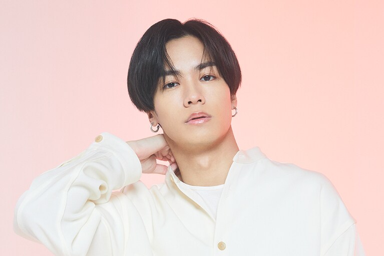 《三山凌輝》シャツ 161,700円、パンツ 178,200円、ネックレス 322,300円(太)、ネックレス 81,400円(細)/すべてボッテガ・ヴェネタ(ボッテガ・ヴェネタ ジャパン) ニット 63,800円/OUAT ©2022「HiGH&LOW THE WORST X」製作委員会 ©髙橋ヒロシ(秋田書店) HI-AX