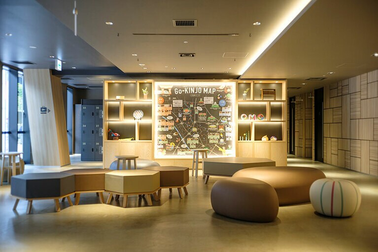 OMO5金沢片町の館内は、心がほっこりと癒やされるような、温もりを感じる空間が広がっています。 エントランスでは、「加賀八幡起きあがり」をモチーフにした色鮮やかな九谷焼きアートがお出迎え。 カウンターに設置されたタブレット型の「自動チェックイン機」でセルフチェックイン。客室カードキーも簡単に作ることができます。 チェックイン前やチェックアウト後に荷物を預けられるから、手荷物一つで思い切り観光を満喫できるのが嬉しい! 洗濯乾燥機・スマートランドリー「wash+comfort」。アルカリイオン電解水「wash+ウォーター」で洗い上げる、自然に優しい仕様です。洗濯35分/300円、乾燥15分/100円。 1階エレベーター前には、歯ブラシやくしなどのアメニティと、ルームウェア(1着 200円)が用意されています。 1階にある「OMOカフェ」のカウンターでは、スナックやアルコール類も購入できます。 客室の部屋番号のプレートも九谷焼をモチーフにしたデザインです! スモーキーグリーンの壁紙やカーペットが落ち着いた印象の客室。 「スーペリアルーム」には大きなソファーや、壁際にちょっとした作業ができるスペースもあります。 ベッド下には、スーツケースを収納できるスペースが設けられています。スーツケースをそのまま入れることもできるし、開いて入れておけば荷物の取り出しがとっても楽です! 大きなデスクが設置された「ダブルルーム」。 広々とした「OMOハウス」。キッチンや洗濯機が備えられているので、長期滞在にもぴったり。 ワ―ケーションに嬉しい「OMOワークルーム」。チェックイン前やチェックアウト後にも利用できます。利用料:1時間 500円(1室あたり)。 金沢で育まれた菓子文化を今に伝える和菓子のひとつ・生らくがん。自分で作ってみると、金沢の歴史や文化がより身近に感じられます。 材料はあんこ、和三盆、寒梅粉の3つ。すべて自然由来ものを使っているそう。 「OMOレンジャー」にレクチャーを受けながら白あんを練り上げ、和三盆、寒梅粉を順番に入れて混ぜ合わせていきます。生らくがんを手作りできるなんて感動です! 混ぜ合わせた材料をふるいにかけます。これで生地は完成。とっても簡単なので、子どもと一緒に体験するのも楽しそう。 いよいよ型押しに挑戦。型に混ぜ合わせた生地と餡玉を入れて、上からぎゅっと押します。2回できるので、失敗してももう1度挑戦できます。 諸江屋の職人さんに掘ってもらったというオリジナルのシリコン型。OMOのオリジナルロゴや、桜や桔梗などの金沢をなぞらえた10種のデザインがあります。 手作り生らくがんが完成! 久谷焼のかわいい器に盛っていただきます。 「いいじな棒茶の飲み比べ体験」は、「OMOベース」の一角にある「ご近所マップ(Go-KINJOマップ)」前で開催されます。 棒茶の深煎り「薫」、浅煎り「極」と、煎茶を飲み比べ。急須で淹れるだけでなく、水出しで淹れるとまた異なる味わいが楽しめるそうです。 飲み比べ体験した「野田屋茶店」の加賀棒茶の茶葉とティーパック。ティーパックはホテルのお土産コーナーでも購入できます。 ホテルから徒歩圏内には野田屋茶店のお店もあります。店内にはカフェスペースもあり、ボリューム満点のパフェやソフトクリームなどの、お茶の香り豊かなスイーツも味わえます。