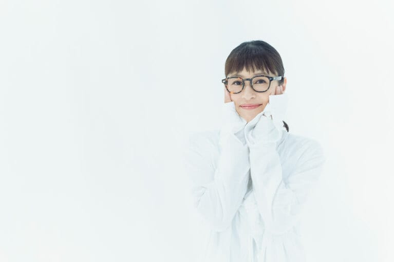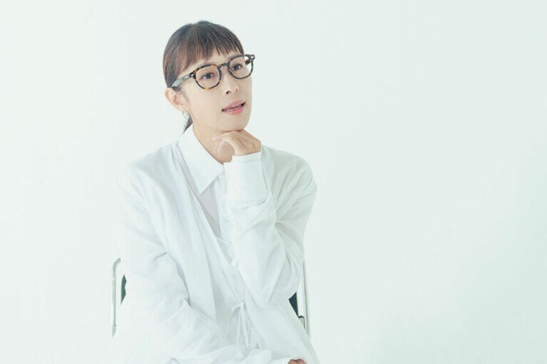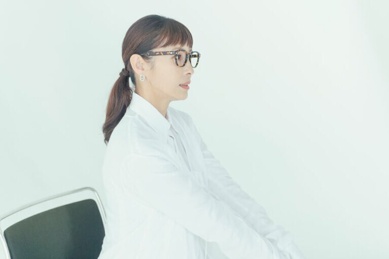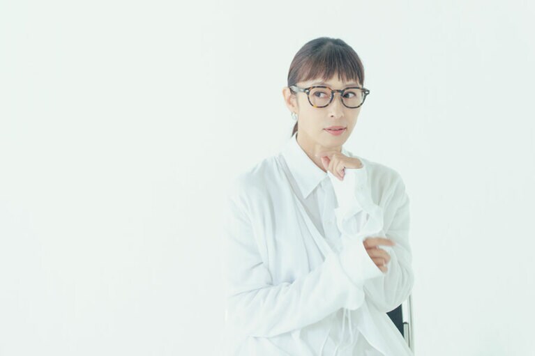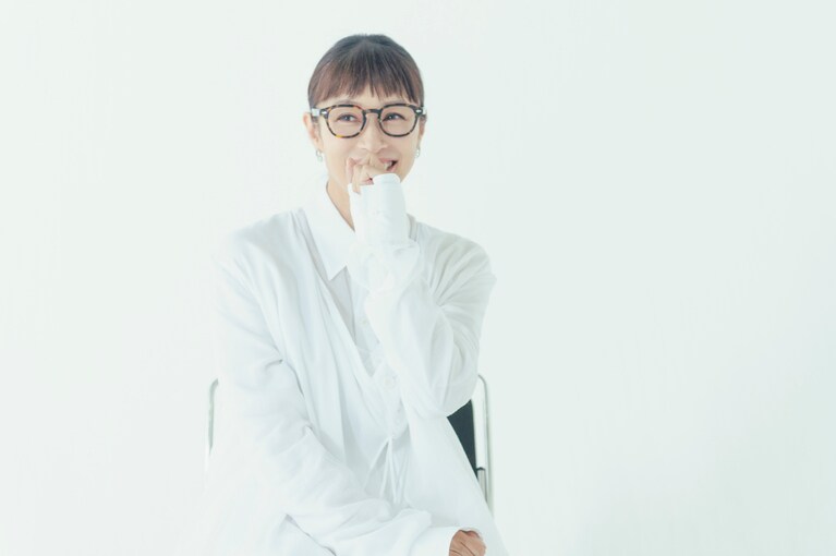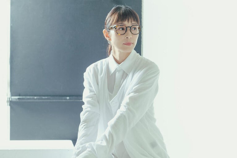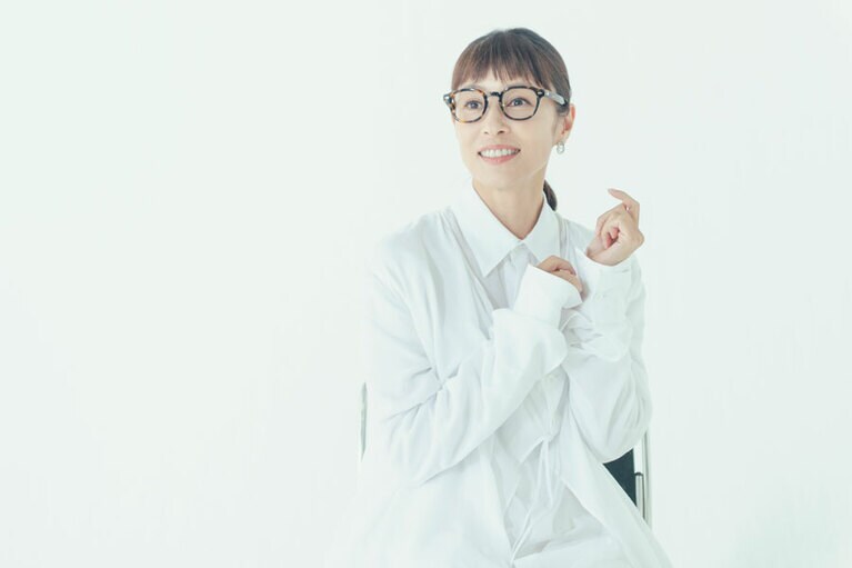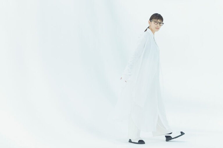 シャツ 48,400円、シャツワンピース 48,400円 YOHJI YAMAMOTO/ヨウジヤマモト プレスルーム(03-5463-1500)、ピアス 22,000円 Grossé/グロッセ・ジャパン(03-6741-7156)、眼鏡 36,300円 MOSCOT/MOSCOT Tokyo、その他スタイリスト私物。全て税込価格。