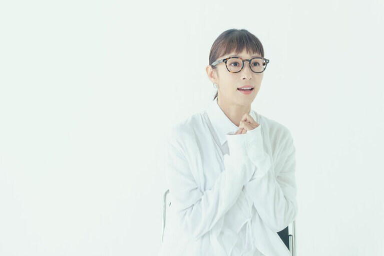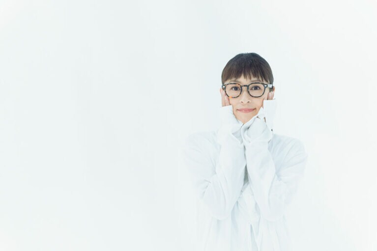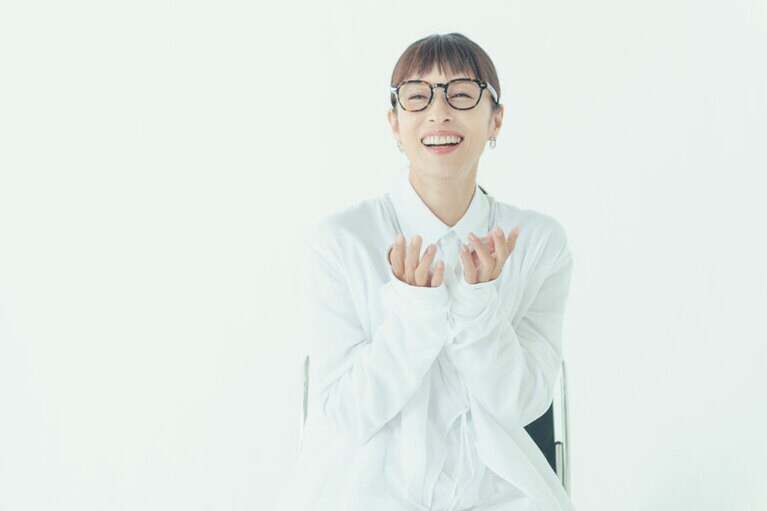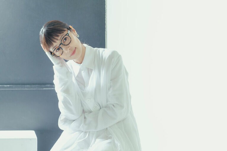 シャツ 48,400円、シャツワンピース 48,400円 YOHJI YAMAMOTO/ヨウジヤマモト プレスルーム(03-5463-1500)、ピアス 22,000円 Grossé/グロッセ・ジャパン(03-6741-7156)、眼鏡 36,300円 MOSCOT/MOSCOT Tokyo、その他スタイリスト私物。全て税込価格。