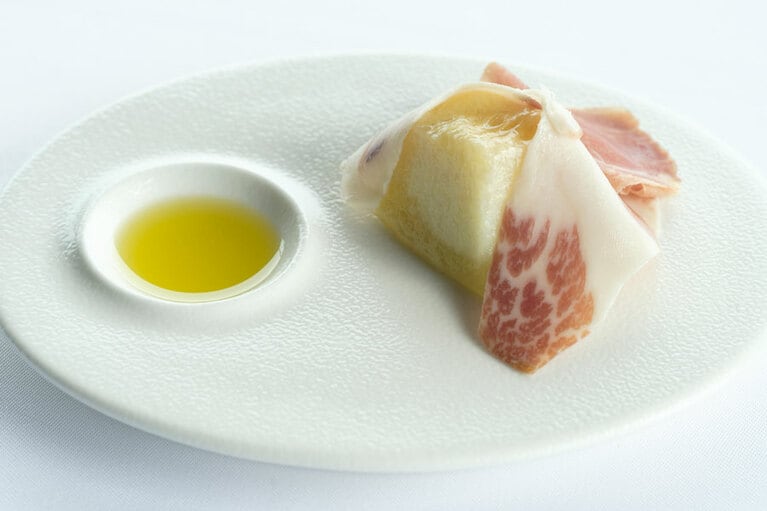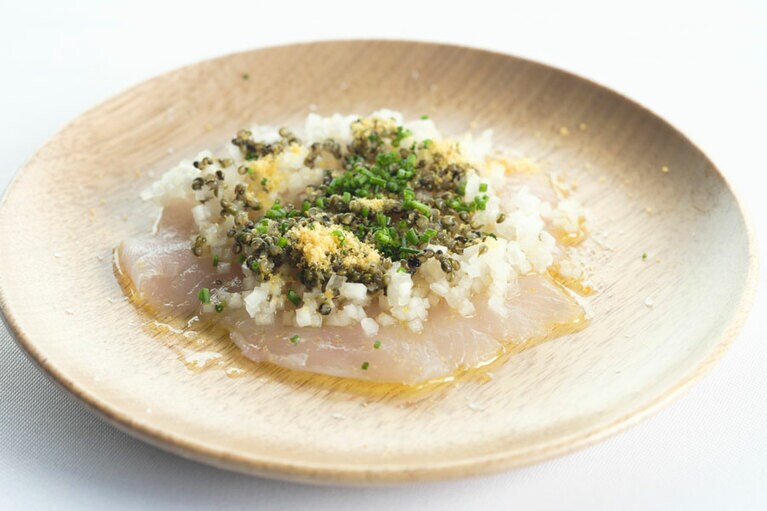田んぼの向こうに月山を望む、約6000平方メートルの敷地が奥田シェフの新たな拠点。 のどかな田園風景の向こうに雄大な月山を望むダイニング。 店名の「アル・ケッチァーノ」はイタリア語にあらず。 生まれ故郷・庄内の食の豊かさを、世界に発信し続ける奥田政行シェフ。 テーブルがゆったりと配置されたダイニングは、平日の昼間から多くのゲストで賑わう。 庄内の海や川、里山の豊かさを映し出すアミューズ。 味の濃いだだちゃ豆に、ほろ苦いビールの泡がマッチ。 左:地魚と野菜の食感カルパッチョ。刺身のツマを刻んでトッピング。 右:加熱し風味を増幅させたメロンと生ハムをオリーブオイルで。 外内島きゅうりの甘み、皮の辛味も活かした出色のパスタ。 地酒で蒸したアワビのパッパルデッレは肝のソースで。 ゲストも出入りできるワインセラー。ここで直接ワインを選ぶことも可能。 トマトソースなどの加工品も販売。日本海の海水から作られる塩は日本海の魚介にマッチ。