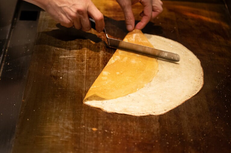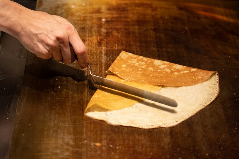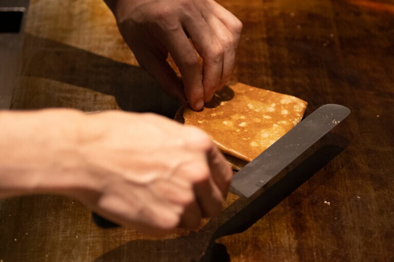 温度で表現できるのもアシェット・デセールの魅力。 ステージのようなカウンター。 「黒トリュフクレープ 黒トリュフのグラスとシェリー酒ソース」2,970円。 その香りに期待が膨らむ。 「リベルターブル」オーナーシェフであり、パティシエの森田一頼さん。 「シャインマスカット ソルベとグラニテ シャンパンジュレとパンプルムース」1,980円。 「無花果の赤ワイン煮とクラフティ マスカルポーネアイスとメレンゲ」1,980円。
