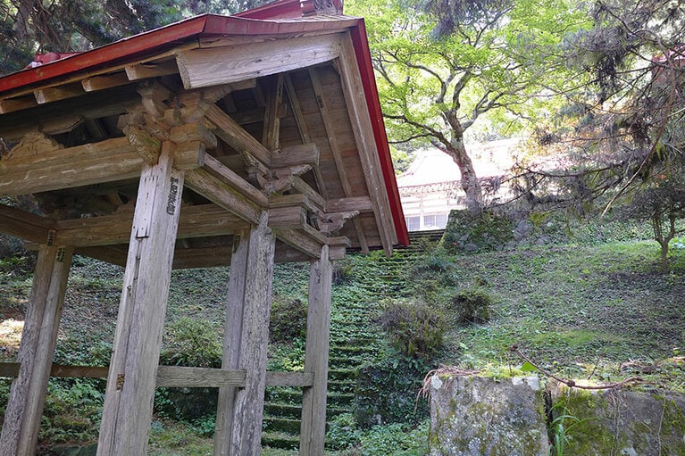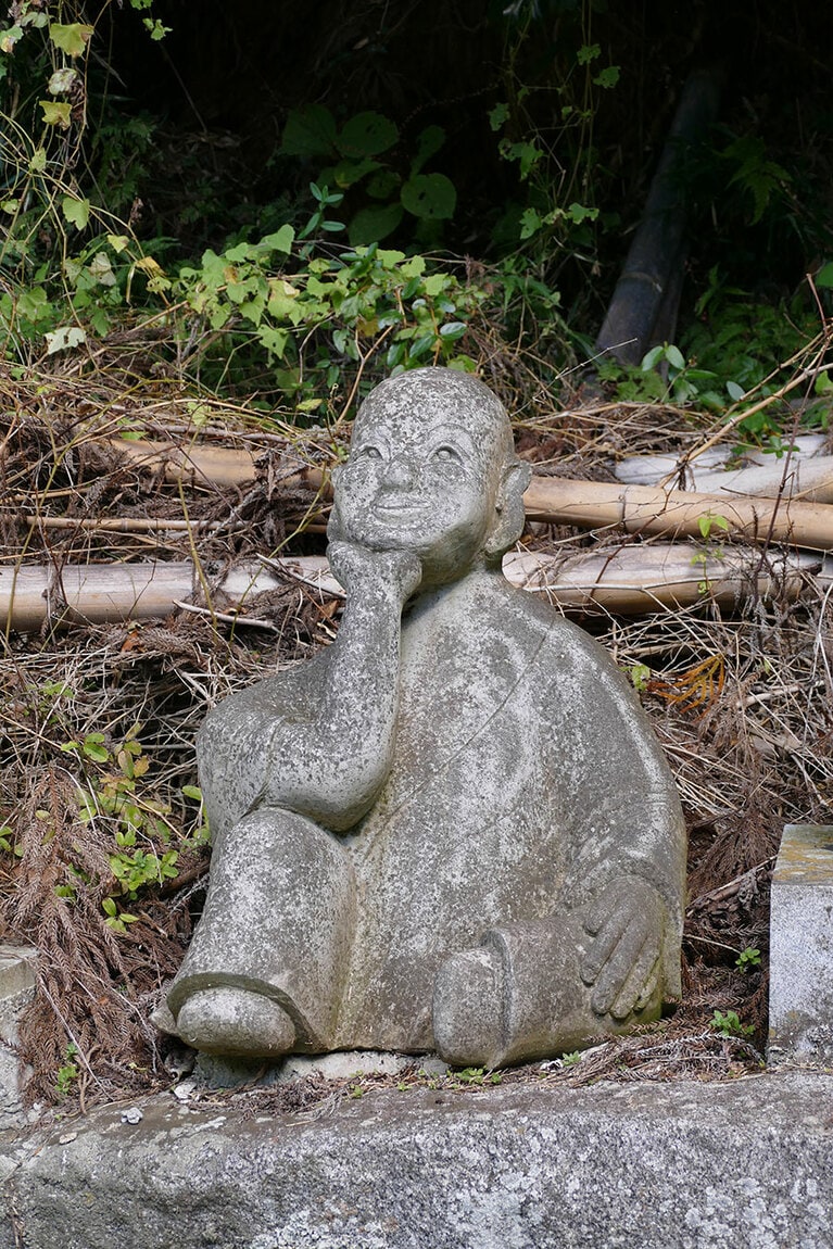石段を進んだ先に観音堂が。その裏手に五百羅漢がいるらしい。 インパクトの強い石像は誰? 誇らしげに米俵と鉢巻きに刻まれた「JA」の文字。 あの絵を思い出さない人はいないであろう「絶叫羅漢」。 叫んでいる理由は誰も分からない。 喧嘩上等! なのか? 目が合って一気に不安になる。