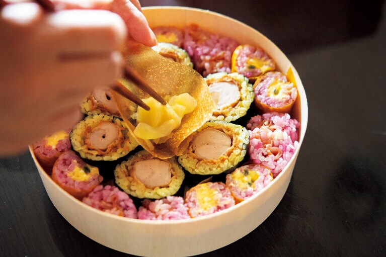 富士山と桜、亀に鯛の絵柄も… 作って、眺めて、食べて楽しい 巻き寿司アートの世界