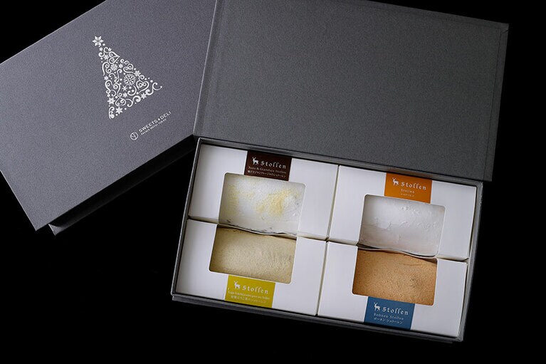 パレスホテル東京「シュトーレン」4種、(左上)「ベラヴェッカ」2種。 ウェスティンホテル東京「ペストリーシュトーレン」(15cm×9cm/3,000円)※アルコール使用。 ホテルニューグランド「シュトーレン」(7cm×20cm/3,024円) ザ・キャピトルホテル 東急「シュトーレン」(限定400個 17cm×8cm/4,536円)。 ホテル雅叙園東京「シュトーレン」(320g/3,500円)。 ストリングスホテル東京インターコンチネンタル「栗とけしの実のシュトーレン・ホワイト」(13cm/2,484円)。 ストリングスホテル東京インターコンチネンタル「シュトーレン・ショコラ」(13cm/2,484円)。 コンラッド東京「トラディショナル」(左)「ゴールデン」(右)(23cm×10cm/各3,800円)。 アマン東京 オリジナル「シュトーレン」(小/1,944円、大/4,104円)。 フォーシーズンズホテル東京大手町「シュトーレン」4,800円。 帝国ホテル 東京「シュトレン」(大/5,940円、小1,944円)。 帝国ホテル 東京「ヌス シュトレン」(4,800円)。
