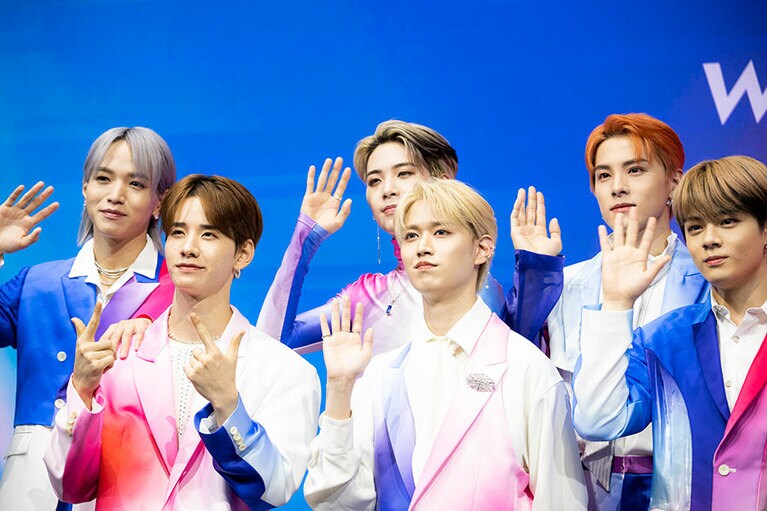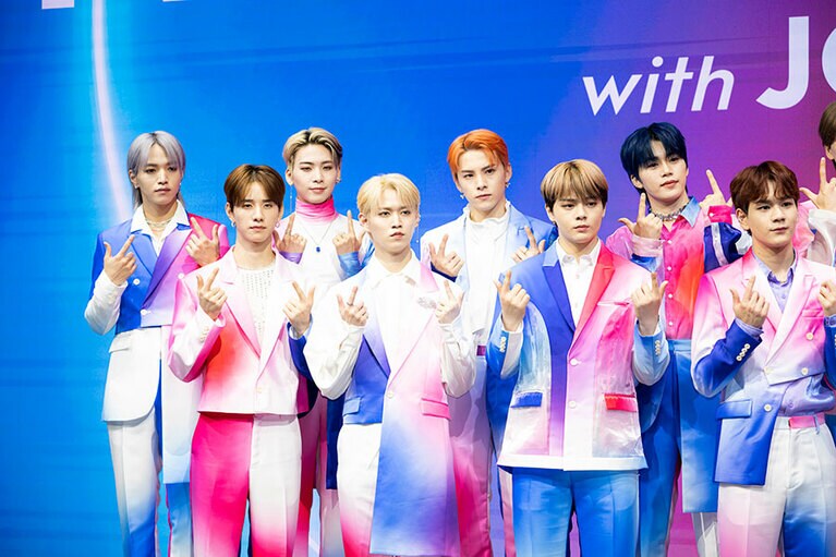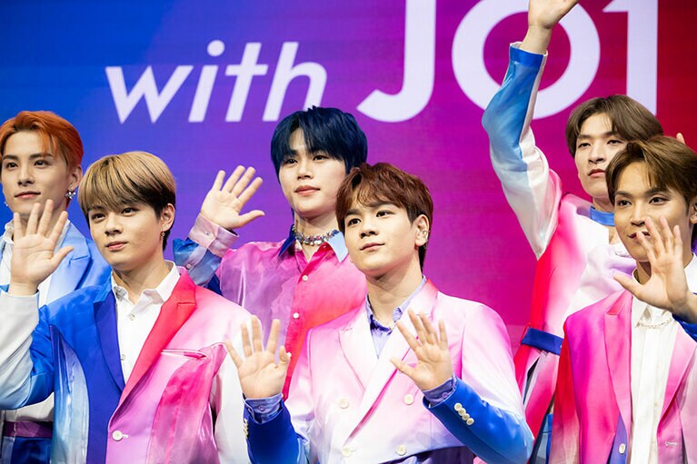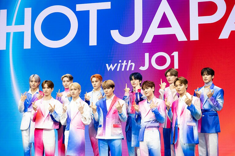 メンバーを代表してアンバサダー就任の挨拶をする與那城奨さん。 LAPONE ENTERTAINMENTの崔信化社長。 河野純喜さん。 金城碧海さん。 大平祥生さん。 鶴房汐恩さん。 白岩瑠姫さん。 木全翔也さん。 豆原一成さん。 佐藤景湖さん。 川西拓実さん。 川尻 蓮さん。