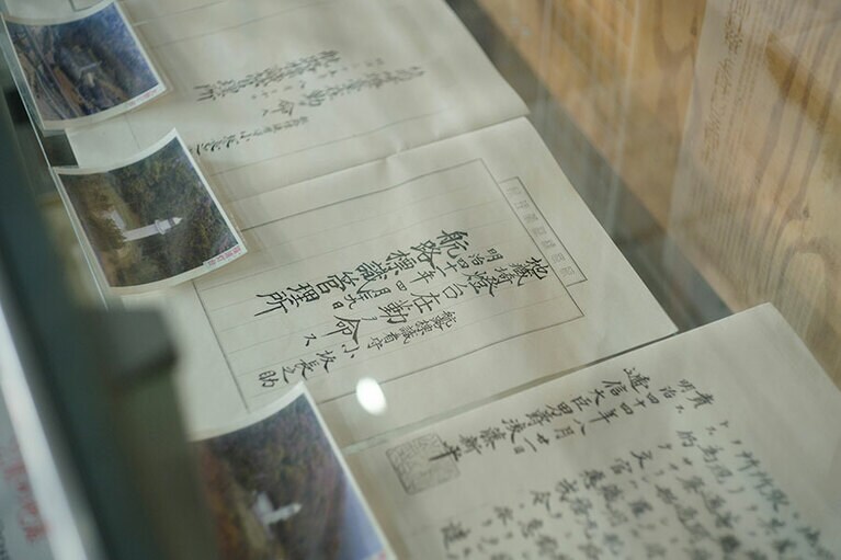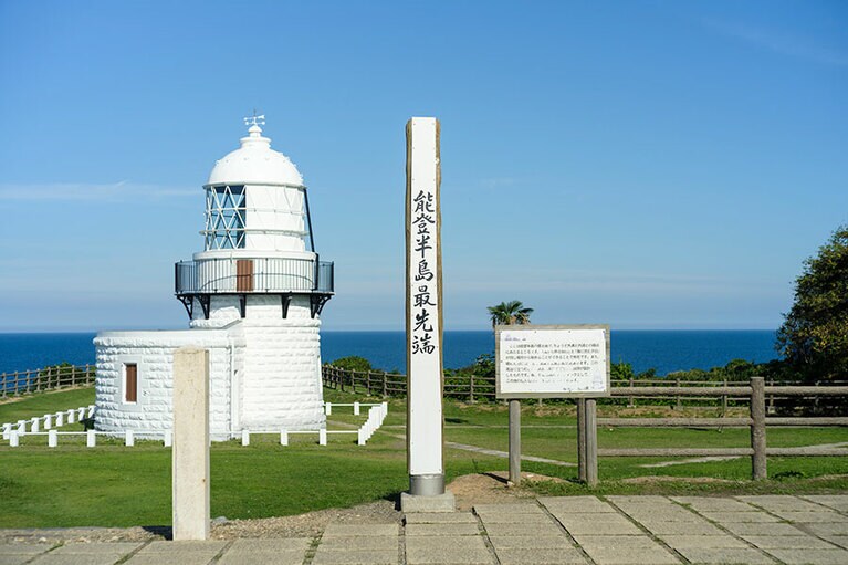 灯台の建つ禄剛崎は東、北、西の三方に海が開け、海から昇る朝日、海へ沈む夕日が同じ場所から望める岬。 歴史的・文化的価値の高さから、Aランクの保存灯台に指定されているほか、「日本の灯台50選」にも選ばれている。 灯台は高台に建ち広範囲に灯火が送れる。 白亜の灯台と呼ばれる禄剛埼灯台には日本で唯一「菊の御紋」が設置されている。 畳が敷き詰められたような海岸は千畳敷と呼ばれている。 明治14年に工部省から左大臣あてに灯台設置の理由を記した古文書。 レンズは第2等不動フレネル式。 プリズムで囲まれたレンズはどこか幻想的な印象だ。 晴れた日には遠く佐渡島や立山連峰も目視できる。 能登と海外との交流の歴史を物語っていると思うと感慨深い。 灯台看守の官舎があったころの写真。 官舎横にあった倉庫が狼煙町内に移築されている。 能登半島は北前船など日本海交易の中継地でもあったことから、独特の文化が発達した。