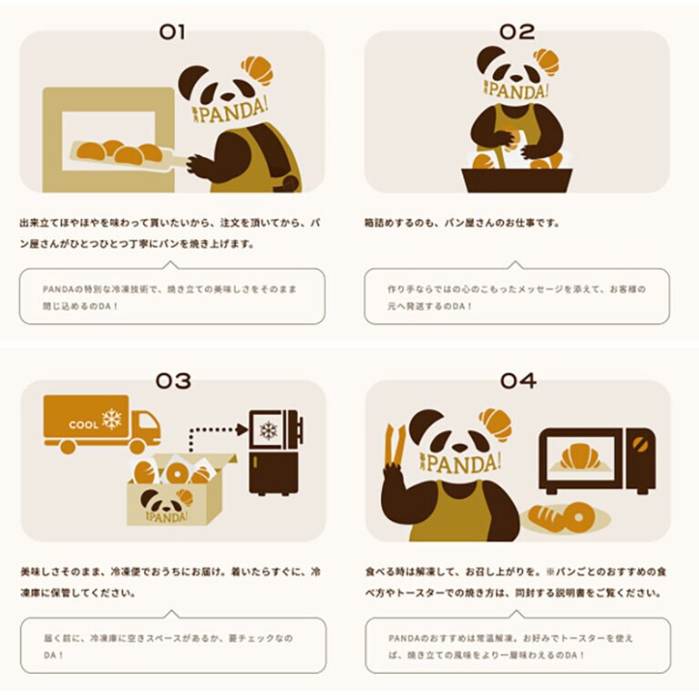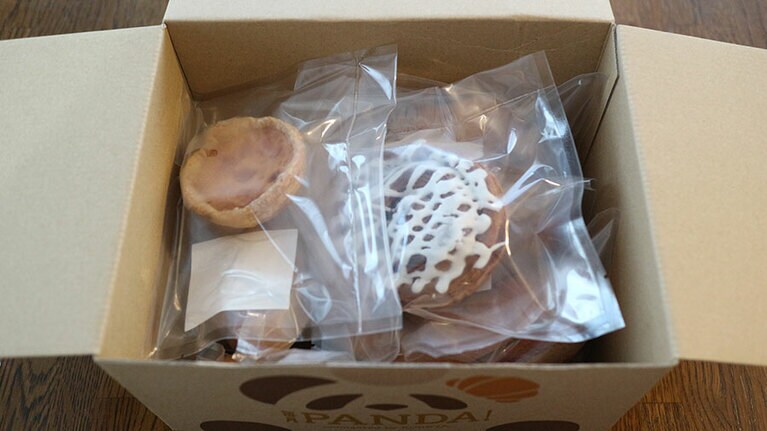 段ボールからかわいい。 耳がクロワッサン。 お母さんパンダ。 箱を開けるとご挨拶が。 「ブーランジェリー パルク」。 パンがたくさん出てきました。 奥から時計回りに:冷凍庫に入りきらなかった面々。 「焼きプリン」。 「あんバター」。 さっそく温め直した写真を撮っていない「チョコナッツスコーン」。 「ゆずこしょうソーセージ」。 撮り忘れの反省から、断面まで。 「シナモンロール」。また焦がしてしまいました……。 「イチジクロール」。 「クリームチーズとはちみつ」。安定の焦げ感。 「クランベリーとチョコ」。 ヴァンダラスト(群馬県太田市) 大正屋ブーランジェリー(埼玉県越谷市) ベッカライ0044(埼玉県川越市) トーチドットベーカリー(東京都大田区) コバト836(大阪府大阪市北区)