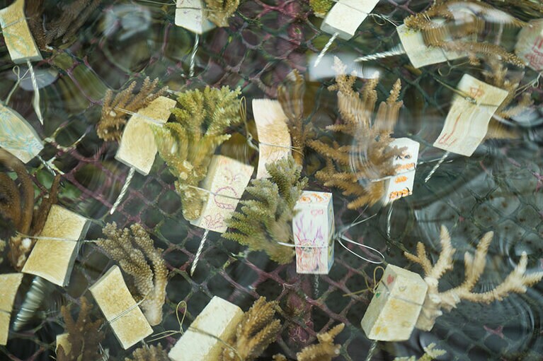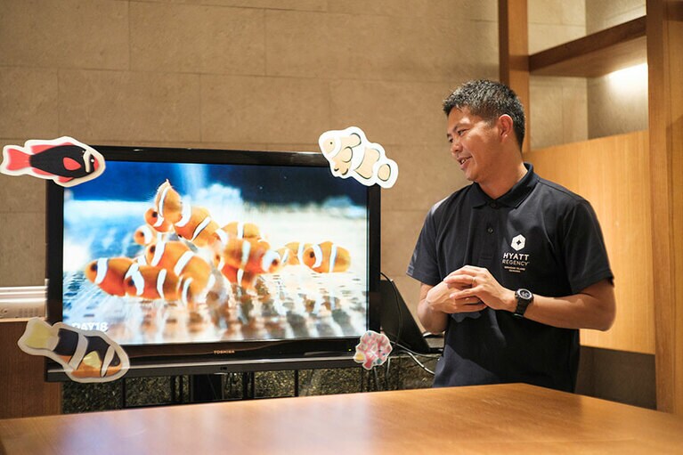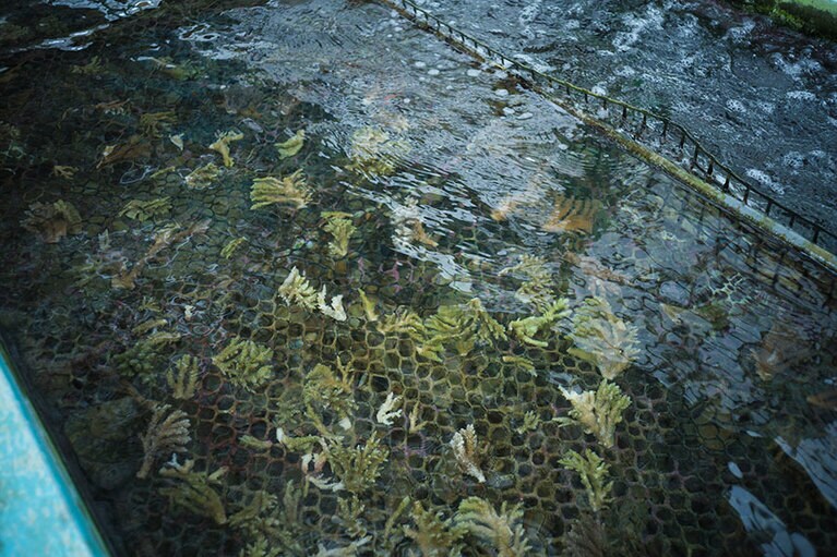 那覇空港から直行リムジンバスで約100分の楽園。 海と共存するリゾート。 スタイリッシュな室内用のボトル。蓋と本体の分別不要。 テントサウナは冬の楽しみ。 温まったあとは目の前のラグーンプールへ。 電動自転車で楽チン。 巣箱には地元の子どもたちが描いたかわいい絵が。 養蜂の指導を行う池宮さん。 黄金色のハチミツがとれる。 サンゴの苗作りを体験。 大嶋紗織さんの愛ある解説が最高。 CREA WEBも参加した証明もいただいた。 サンゴのプール。漁師さんが作ったかわいい場所。 待機するサンゴの苗。思い出がいっぱい! 松堂義史さん。 ホテルでもクマノミを飼育。