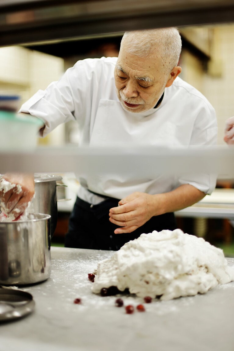 尾山台にある店舗は一歩入るとフランスそのものの空気。 品数の多さだけでも圧倒される。職人が育つ場でもあるのだ。 河田さんの作るお菓子は佇まいも凛々しい。 大きいサイズのお菓子も欠かさない。窓辺にそそり立つのはシグニチャーのひとつ、ガトー・ピレネー。