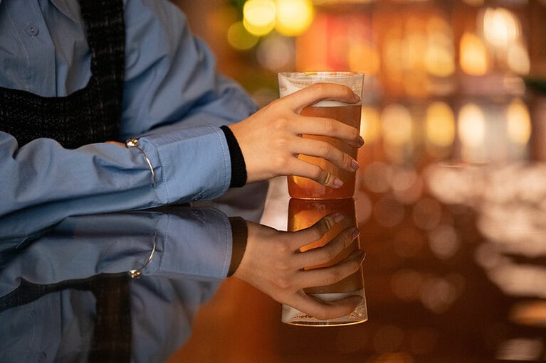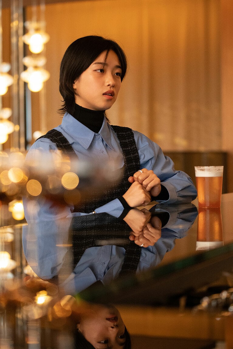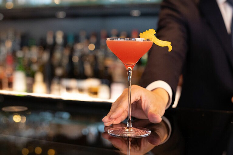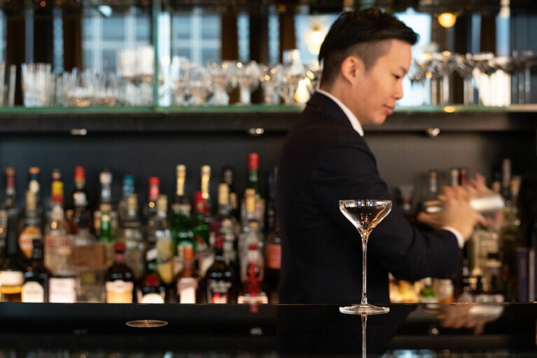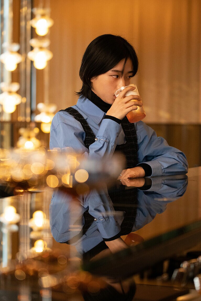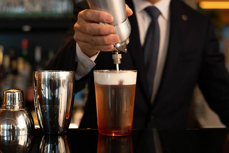 銀座の一等地に建つ「ブルガリ銀座タワー」の10階にある「ブルガリ ギンザ・バー」(東京都中央区銀座2-7-12)。ブルガリ ホテルズ & リゾーツのシグネチャーである「ブルガリ・カクテル」や、イタリアン・クラシックカクテルを現代風にアレンジしたカクテルを楽しむことができる。ランチタイムにはカジュアルなランチセットやアフタヌーンティーも。営業時間[月~木・土]12:00~22:30(LO)[金]12:00~23:30(LO)[日・祝・連休最終日]12:00~18:30(LO) ※営業時間は予告なしに変更する可能性があります。詳細は店舗にお問い合わせください。 ブルガリ ギンザ・バーのビバレッジマネジャー・川久保安寛さん。様々なバーの楽しみ方を教えてくれる。「バーのはしごも楽しいですよ。1軒目は軽いドリンクを、2軒目で中くらいのを、最後に重いカクテルを飲む……とコース料理のような飲み方もあれば、逆に同じカクテルを同じ日に異なる店で飲み比べる、という楽しみ方も」 (左から)「ディス・イズ・ノット・ア・ジャパニーズ・ハイボール」、「フレッチャロッサ」、「ストライク・ファースト」全て2,420円(税込/サービス料別)。 バーカウンターにひとりで座るのは初めての経験。「今まで飲んだことのないハイボール。ハイボールは“ウイスキーを炭酸で割ったもの”だと思い込んでいたので、ヨーグルトとウイスキーを混ぜてフィルターで漉すレシピにびっくり。ヨーグルトの香りがするのに味に濁りがなくて、今まで飲んだハイボールで一番おいしかったです!」 先ほどまでの2軒とはちょっと違う大人の表情を見せる河合さん。 「フレッチャロッサ」について。「イタリアの名産品の材料で作るカクテルです。トリノはチョコレートが有名なのでカカオリキュールを。ミラノはカンパリ、ローマのフラスカーティという白ワインにジンを加えます。最後にサレルノという地域で有名なモッツアレラと牛乳をブレンダーにかけてフィルターで漉すと、透明なモッツアレラウォーターができあがります。それらを合わせて作った、イタリアを旅するようなカクテルなんです」(川久保さん) 「カクテルを普段あまり飲まないので、カクテルの楽しみ方を初めて知りました。カカオの香りとワインのフルーティーな酸味、こんなに繊細に重ねられたカクテルはしっかり舌の上で味わいたい。順番に味わっていけるような奥深さがちゃんとあって、カクテルの世界ってすごいのかも……?」 川久保さんとの会話も弾む。「バーテンダーさんの話を聞くのがすごく楽しい。ひとりでバーに行くって、誰と何を話すんだろう? と思っていたんです。でもバーテンダーの方はお客さんと話す時間も計算して作っているような気がしました。バーでお客さんと話す価値も含めて、1杯を提供されているんだろうなあ。ただお酒を料理に合わせて飲むこととは違う、バーでしか味わえない魅力だなと思いました。お酒を中心とした時間、豊かですね」