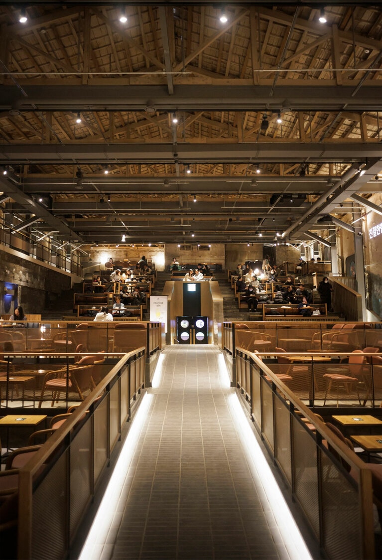 左:1960年代にできた劇場をリモデル。右:店内はとても広いため、出来上がった飲み物の注文番号は壁に大きく映し出される。レシートの番号が出たらカウンターへ。 席のスタイルはさまざま。こちらは劇場の傾斜に合わせて作られた1~2人用のブース席。アメリカーノ(トール)W4,500、ゆずミントティー(トール)W5,900。 バルコニー状の2階席から見下ろすフロア。写真奥のステージだったあたりが注文カウンター。 オリジナルグッズの販売も。 民家と民家の間を抜け大都会の秘密のカフェへ 。左:細い細い路地を抜けて。ビジネスの中心地から取り残されたようなエリアだ。右:路地を抜けたところ。中庭はガラス張りで、店内の賑わいが伝わってくる。 中庭から店内にのびる岩壁。カウンターでは本をめくって。ひとり旅にもぴったりだ。 ウイスキーが充実。「岩の谷」という意味のグレンアラヒーは店の雰囲気にぴったり。15年もの、ロックW24,000。 銭湯の歴史ごと包んだ愛らしいコンセプトビル。左:銭湯の名残の煙突がかわいい。右:入口のタイルなどは新しいが、古い一面に合わせたデザインに。 銭湯時代からあるベル。ビル内には飲食店やオーナーの事務所、ショップが入っている。 最上階にあるレディースのコーナー。ワンピースW189,000。2Fには古着のコーナーもある。 古い銭湯を新しい壁で覆った。