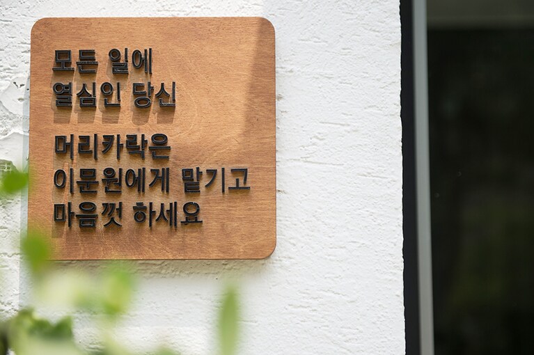 坂を上ると突然現れる「イ・ムンウォン韓方クリニック」。ファサードがゴージャス。 クリスマス前だったので、庭にはツリーが。 季節がいいときはお茶も楽しめそうなテラス。 まるでレストランのような入り口。 ウェイティングルームは大きな窓から光が差し込むリラックス空間。 受付前には、オリジナルアイテムがずらり。先生のイラストが入ったタオルまで! 撮影画像を見ながら丁寧なカウンセリングが。 スケーリングで、余分な角質などをオフして、入れ込む準備。 オリジナルの韓方エッセンスでのケア。 オリジナルアイテムの充実っぷりがすごい。 その人の症状に合ったブレンドで処方。 受付にあるディスプレイは、さすが韓国! といった印象。